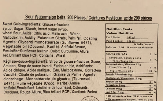 Réglisses Melon d’eau surettes - Sour Belts - 150 gr