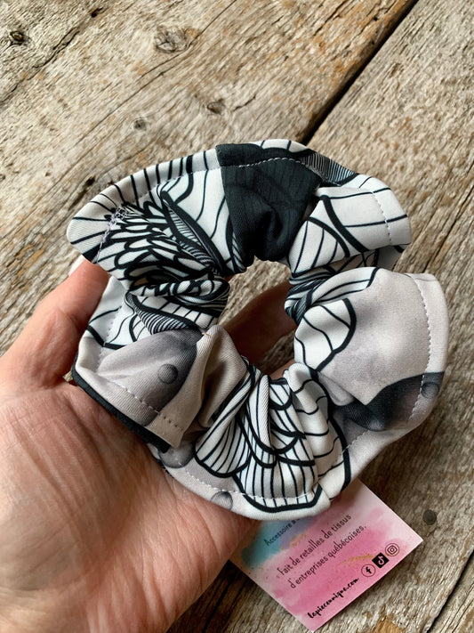 Chouchou - Fleurs -rayures Noir et blanc - Par La Pièce Unique - Élya
