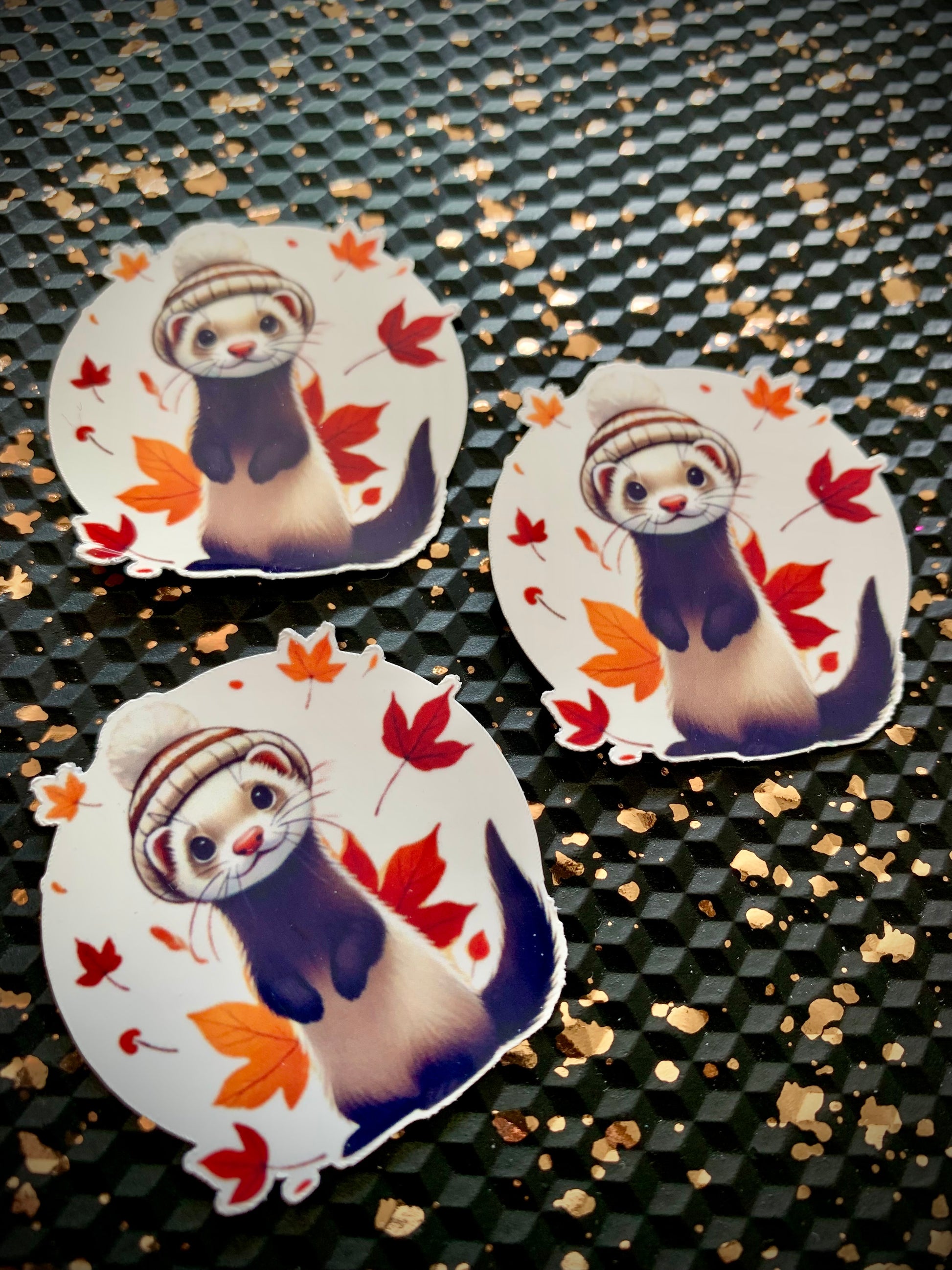 Un joli furet dans les feuilles d’automne avec sa tuque :)