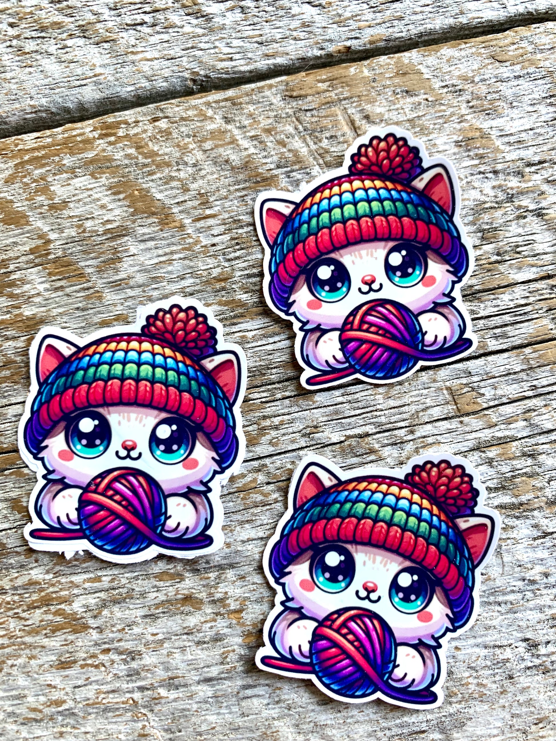 Un joli chat - Pacha - avec sa tuque tricotée et sa balle de laine