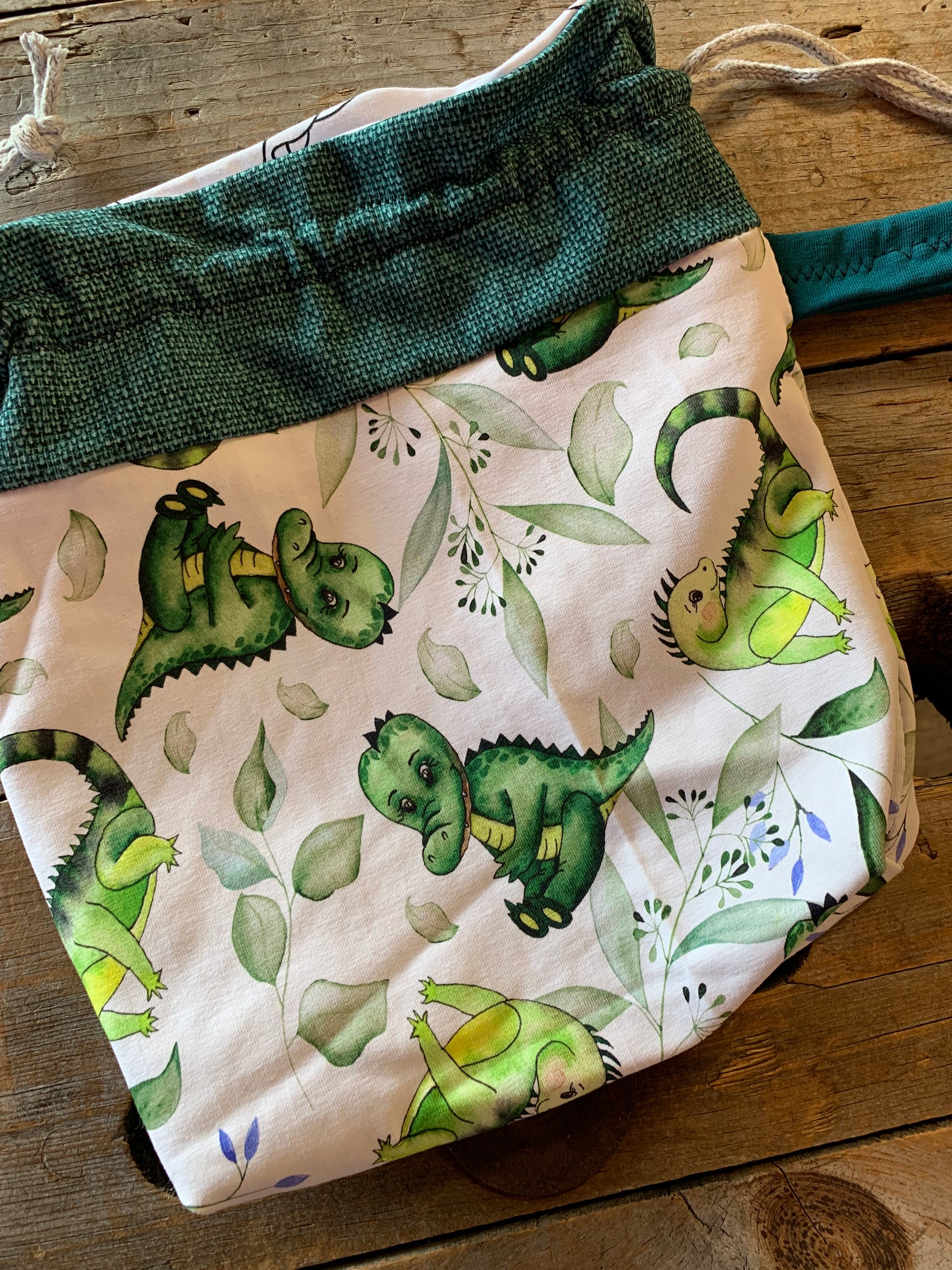 Se ferme avec des cordons - rien pour accrocher votre laine (aucun bouton, velcro ou fermeture éclair). Aucune pochette intérieure - juste un charmant petit sac facile à trainer partout!