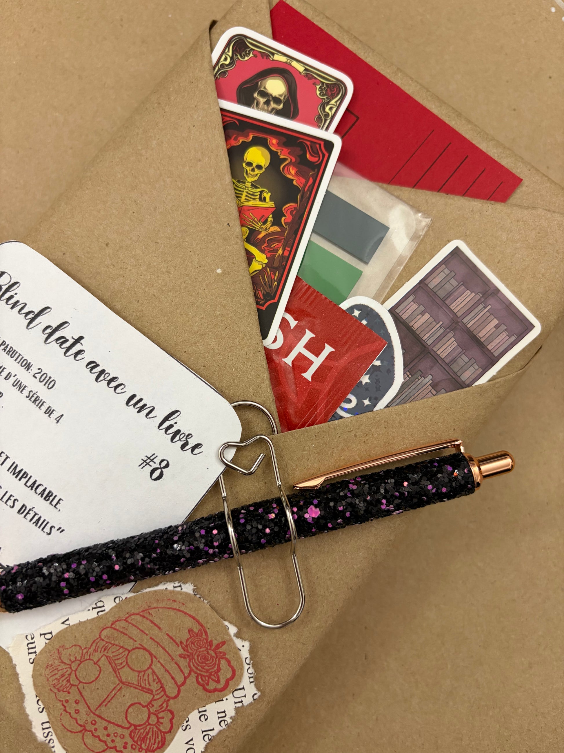 Chaque kit de Blind date vous permet de passer un bon moment en compagnie d’une agréable lecture. NOTEZ que les livres sont de seconde main mais en bon état! Ils peuvent tout de même montrer des traces d’un lecteur précédent, mais rien de flagrant.