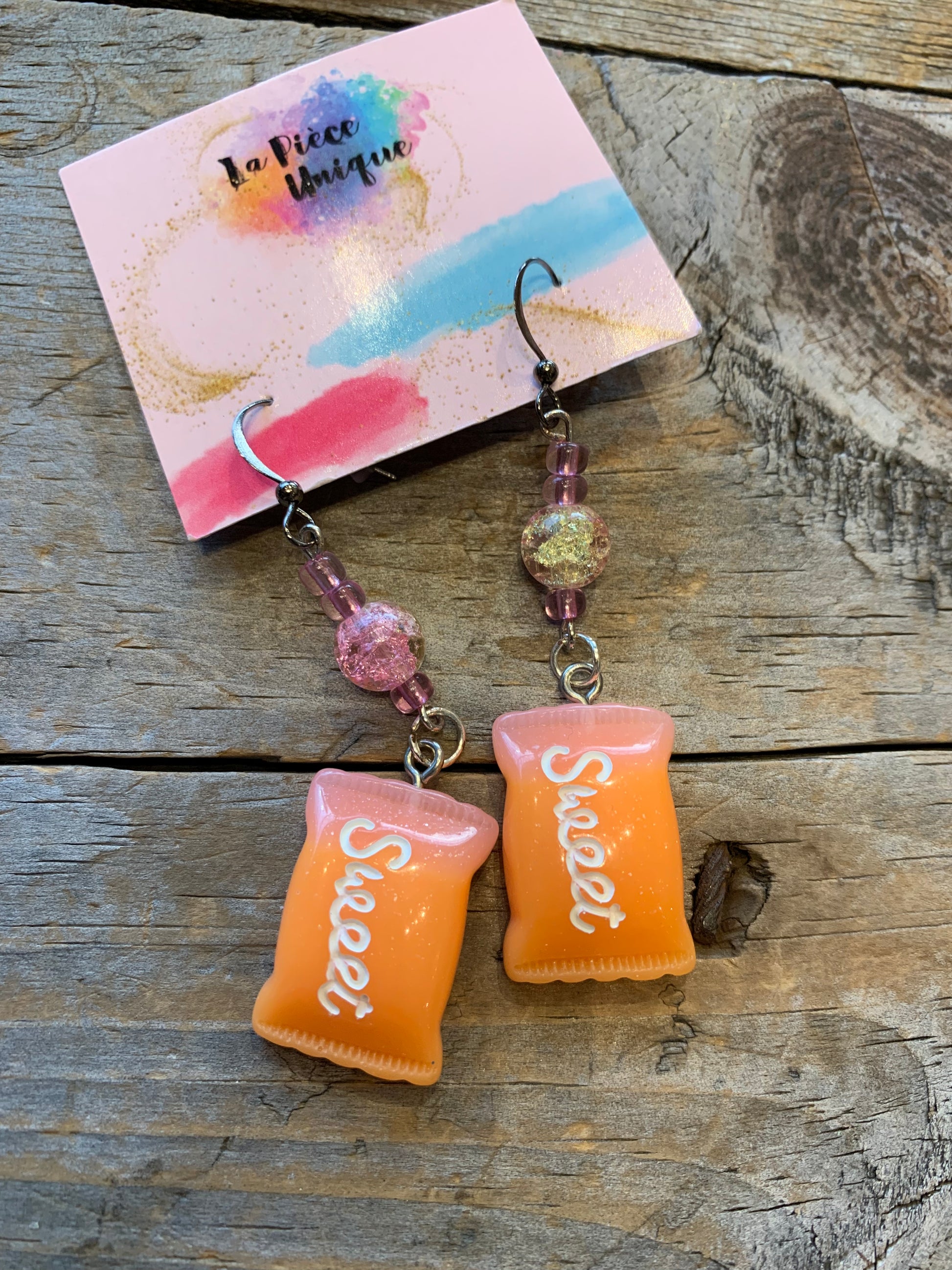 Charmantes boucles d’oreilles de perles, montées par notre petite Kyana, 8 ans (ET DEMI hahah) Chaque paire est unique :)