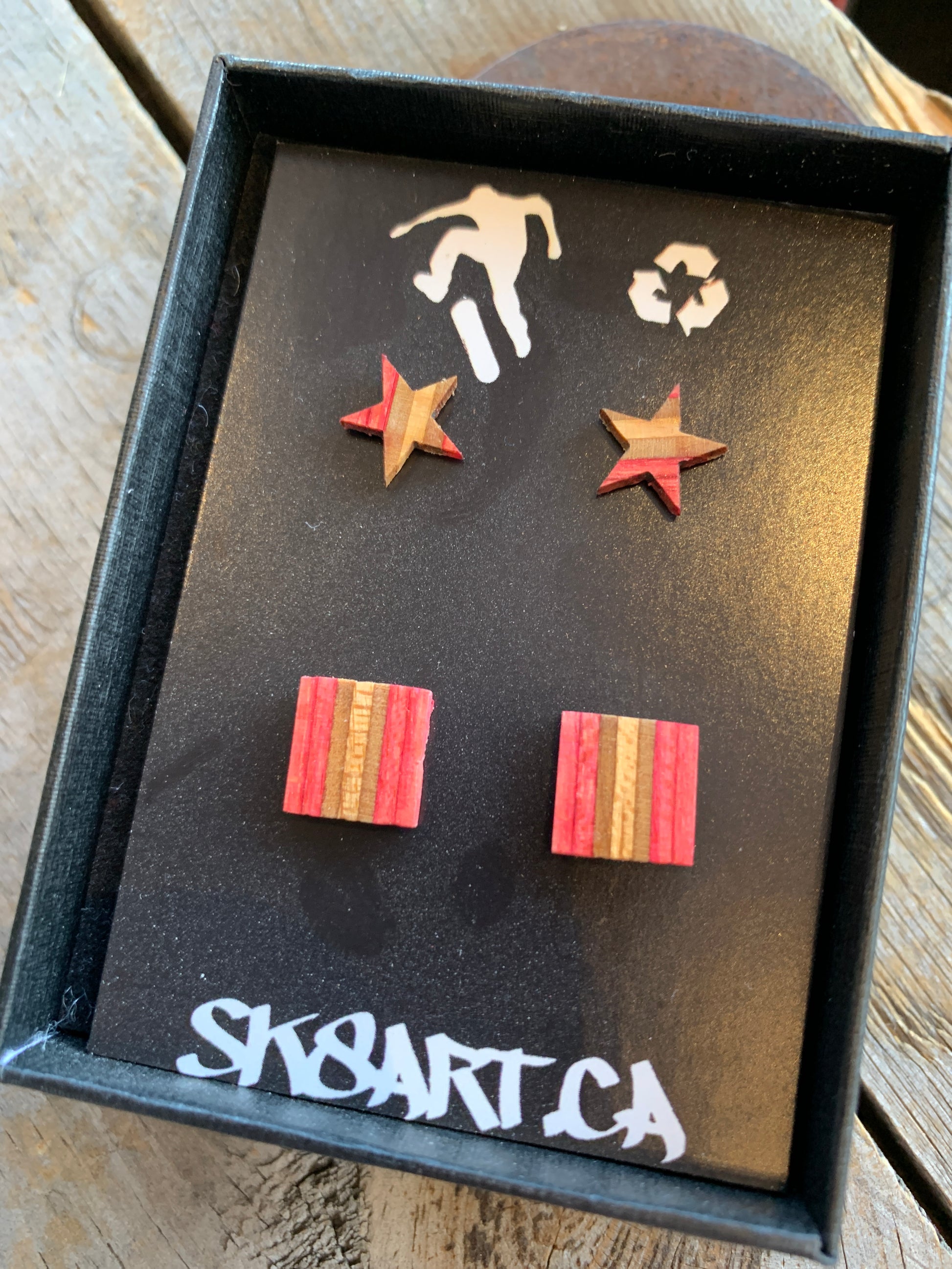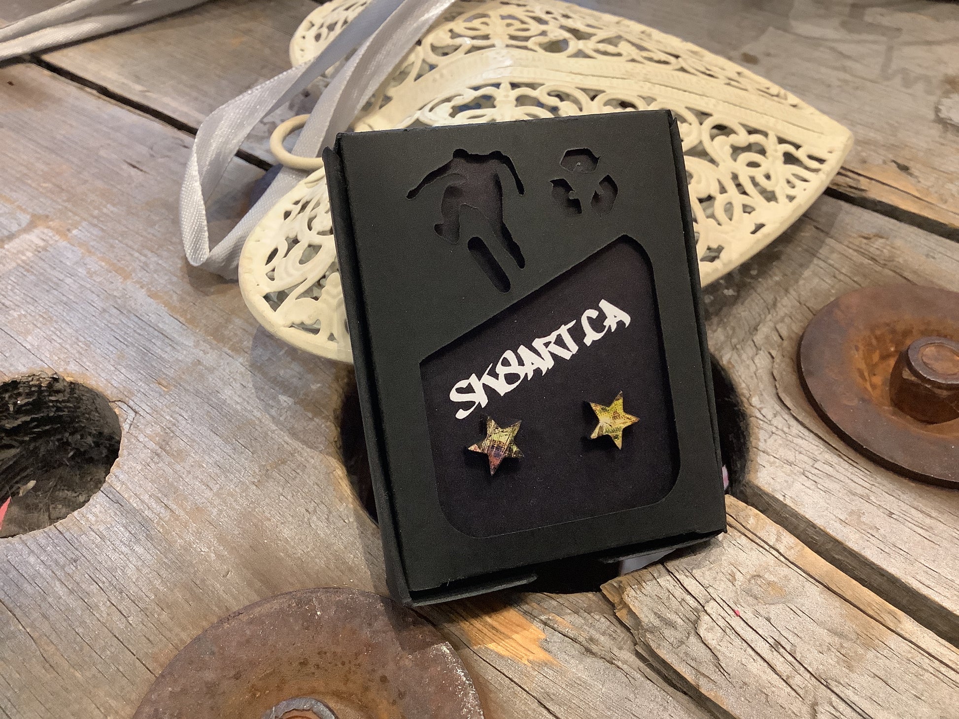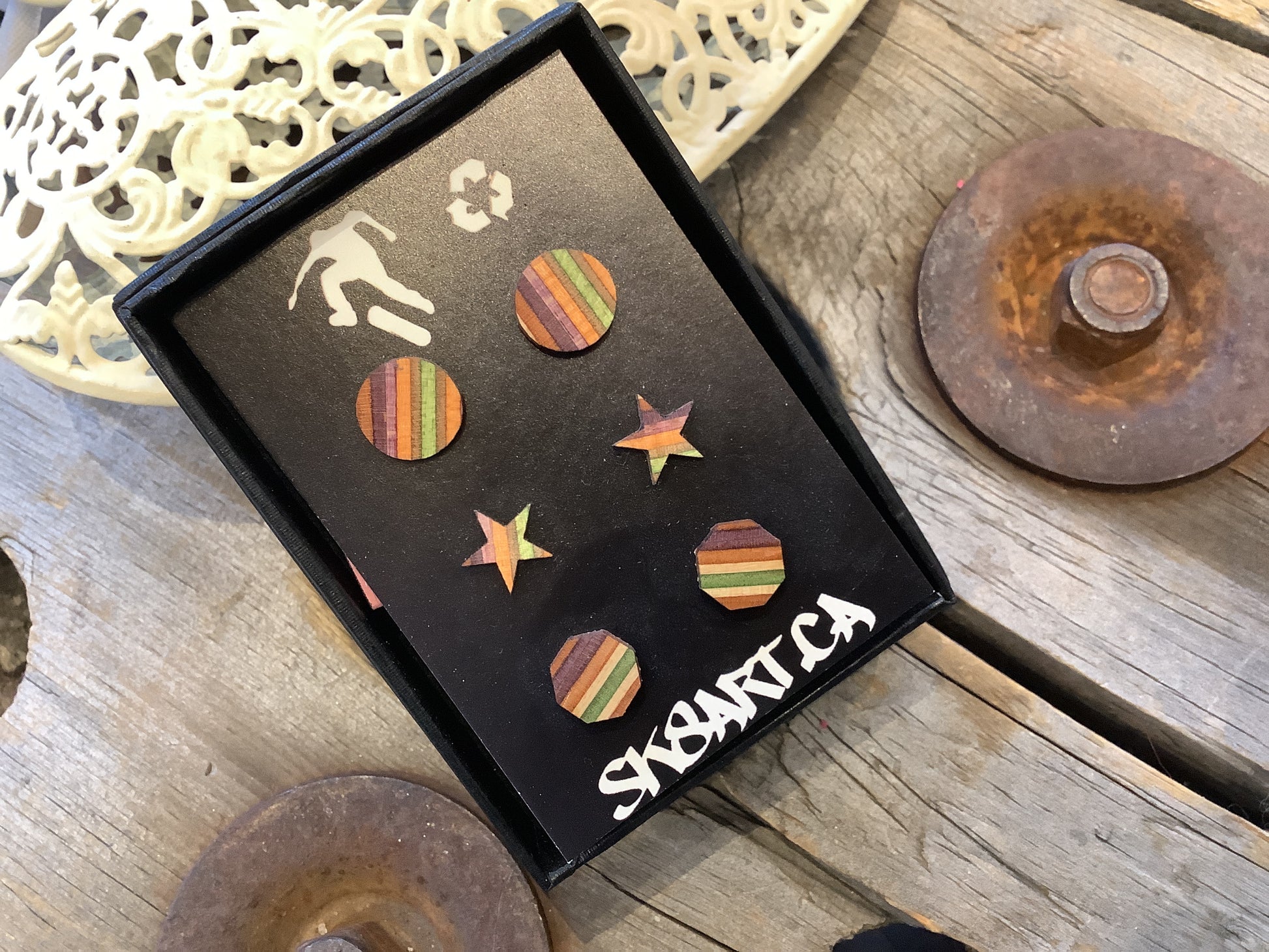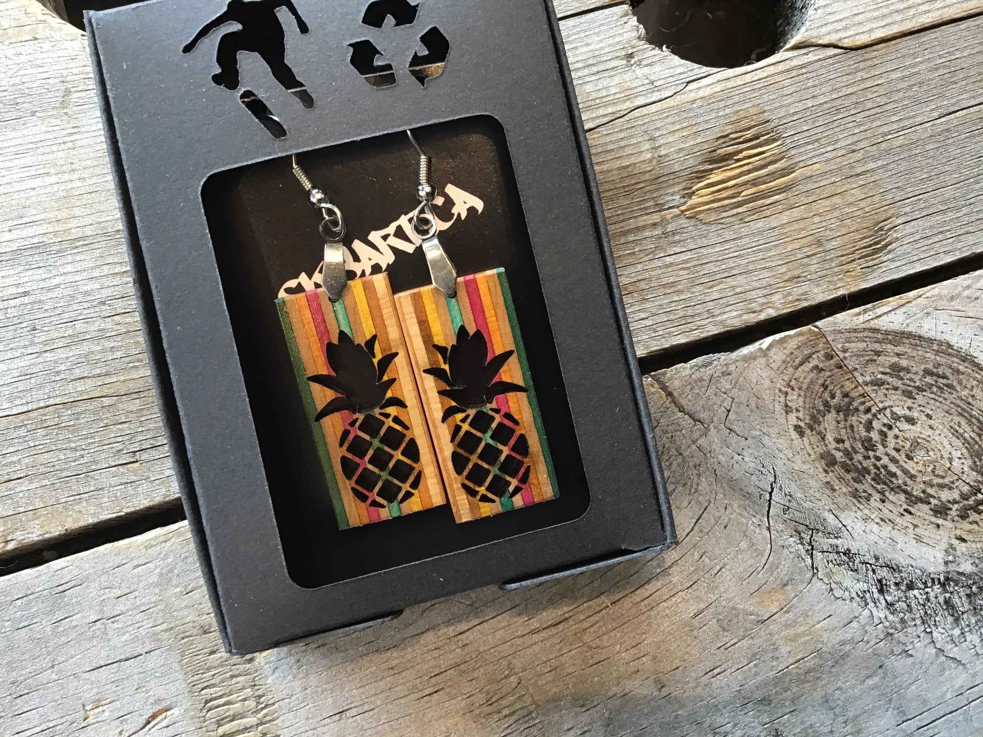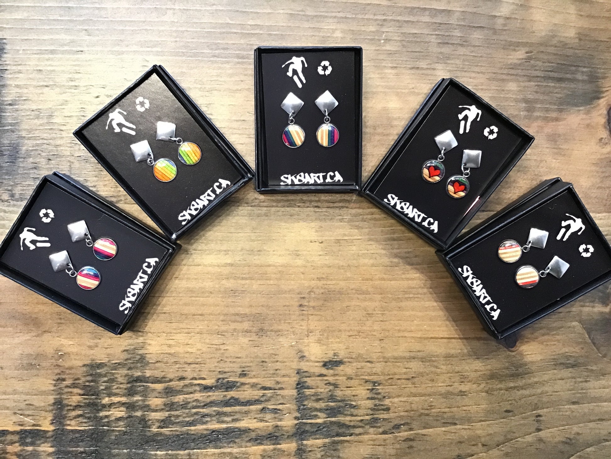 Boucles d’oreilles en planche à roulettes recyclées par PS