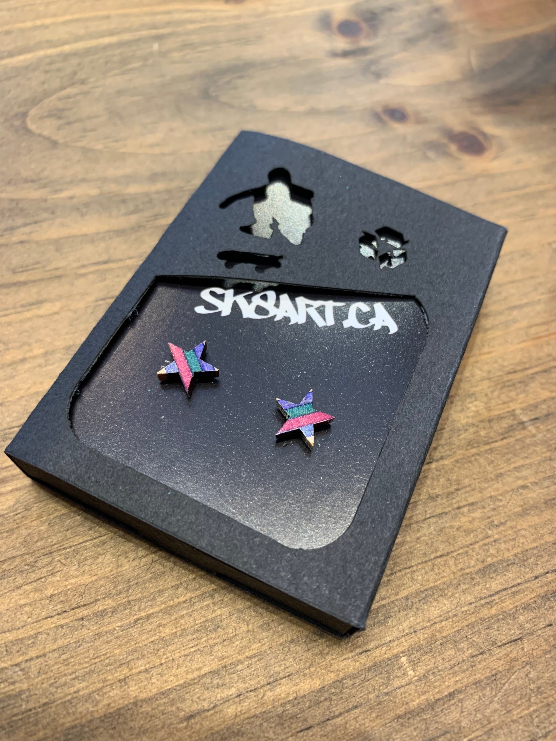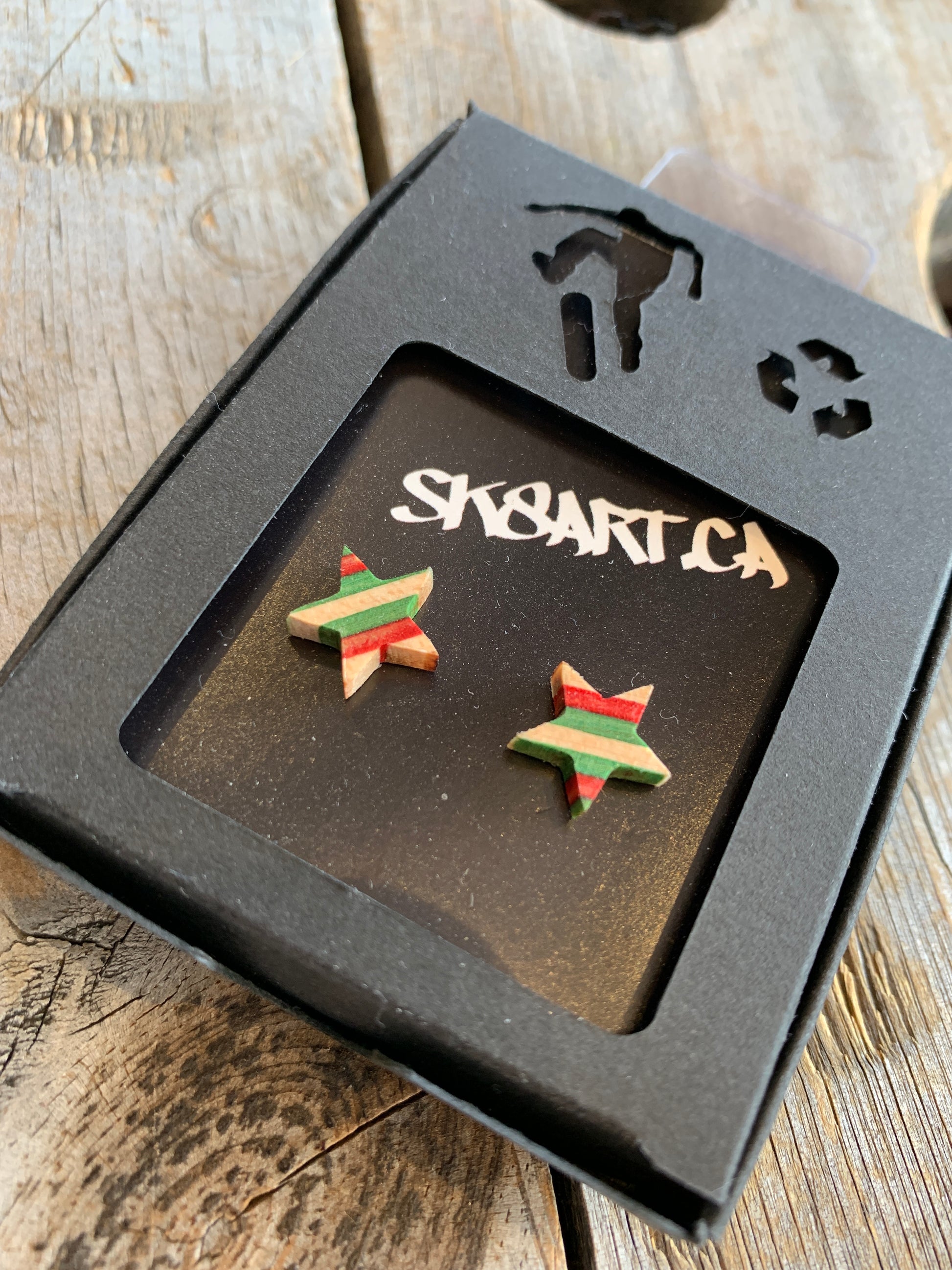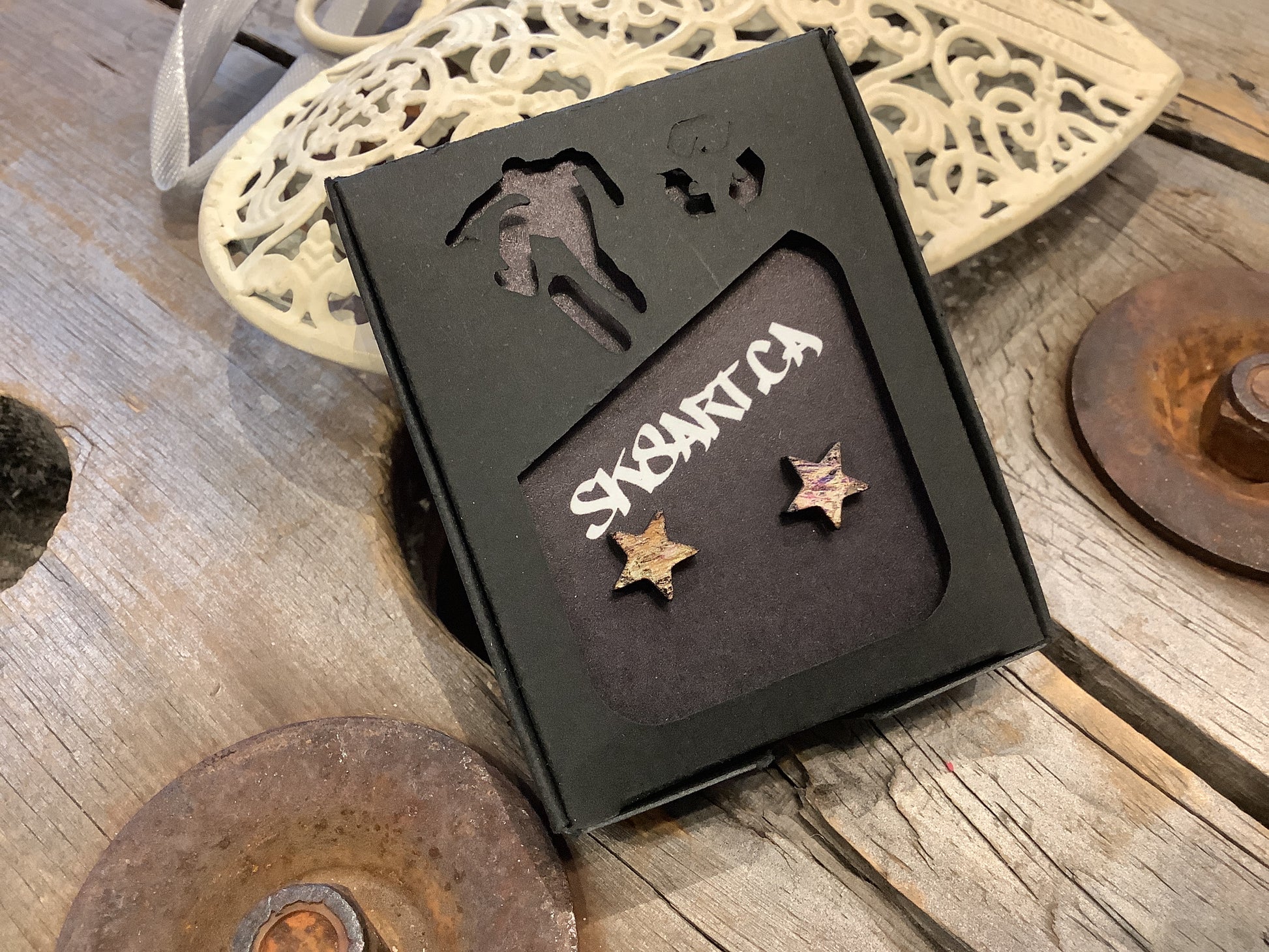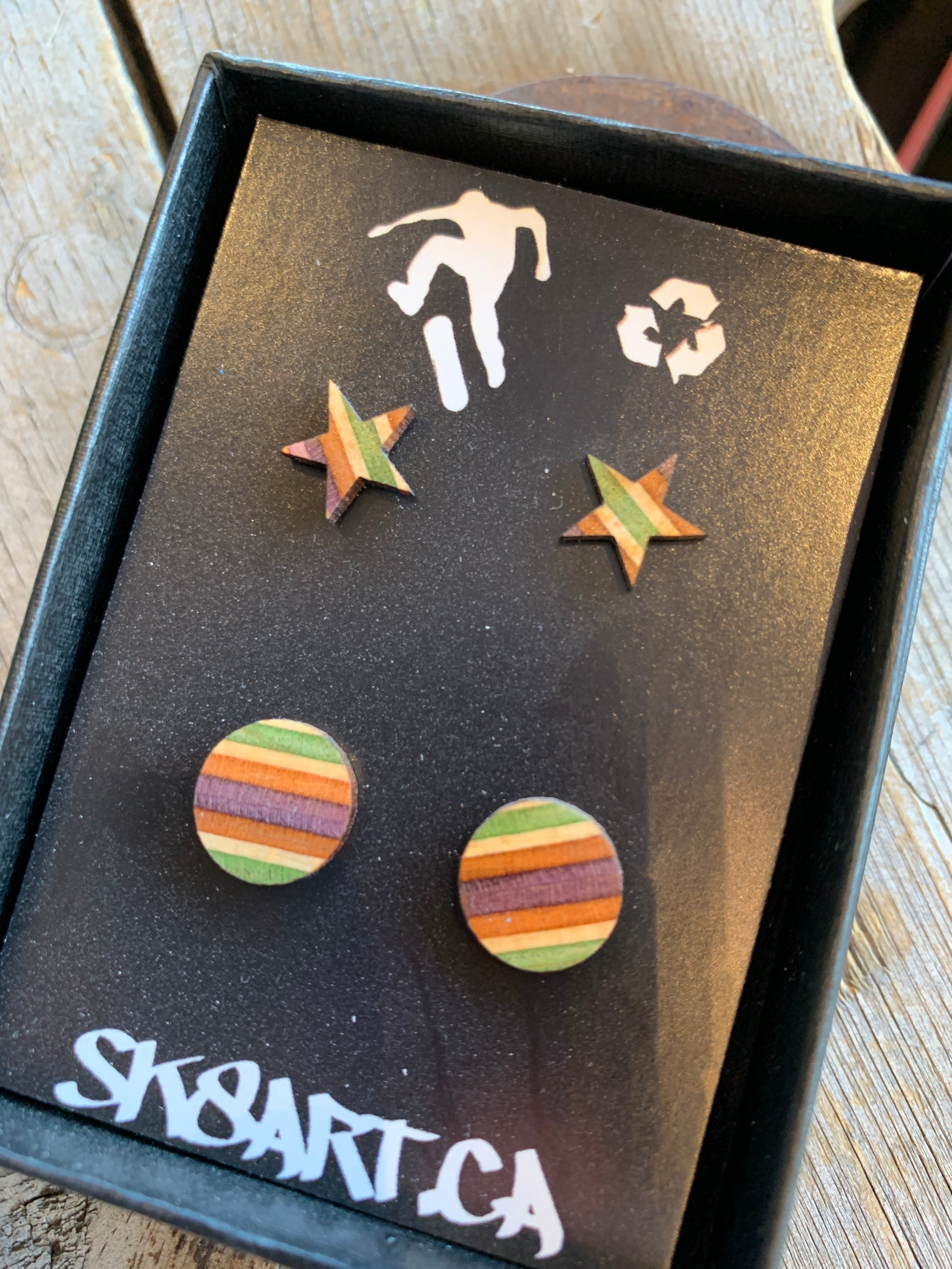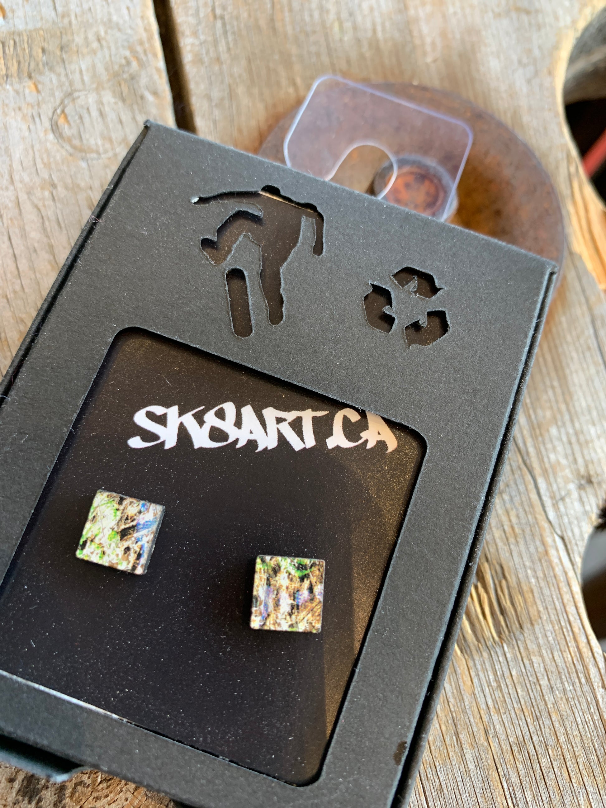 Boucles d’oreilles en planche à roulettes recyclées par PS
