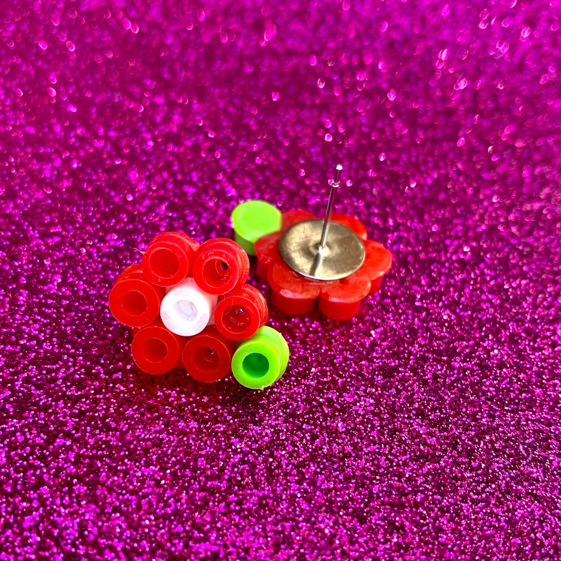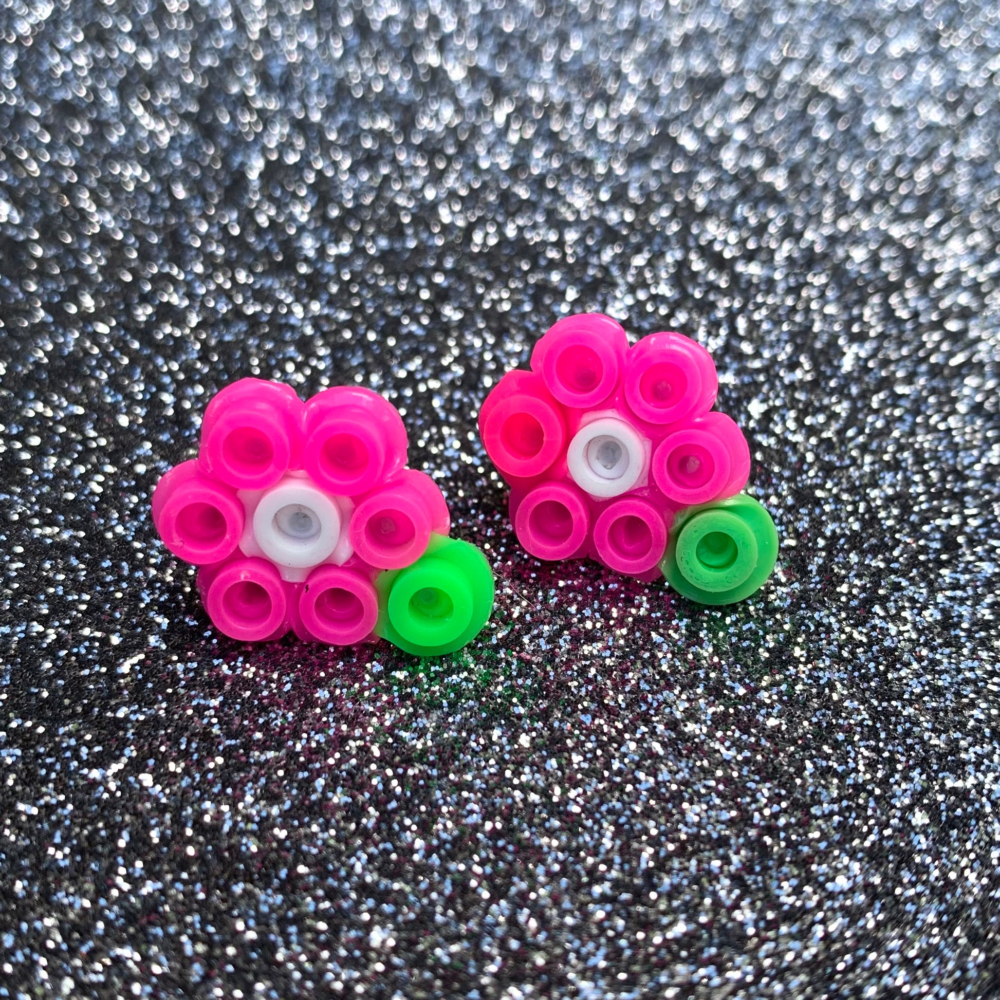 Boucles d’oreilles réalisées par notre jeune fille Kyana. De jolies petites fleurs originales, pour mettre dans la joie dans vos tenues :)