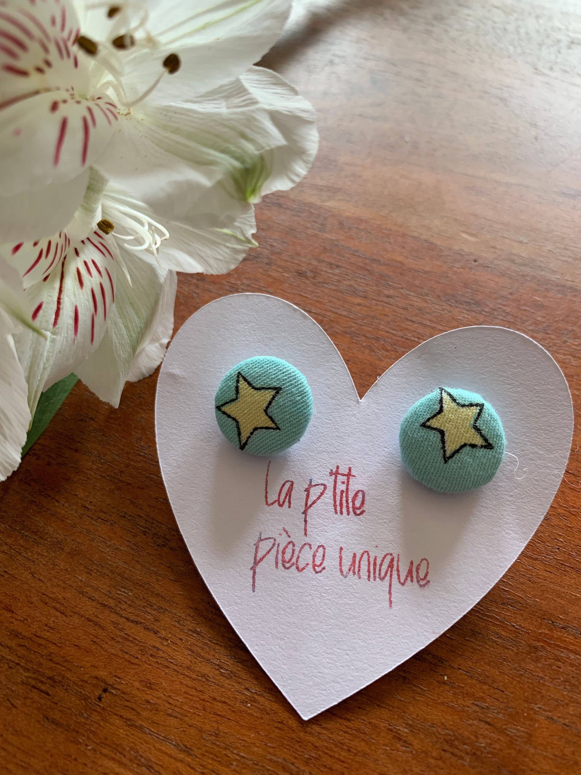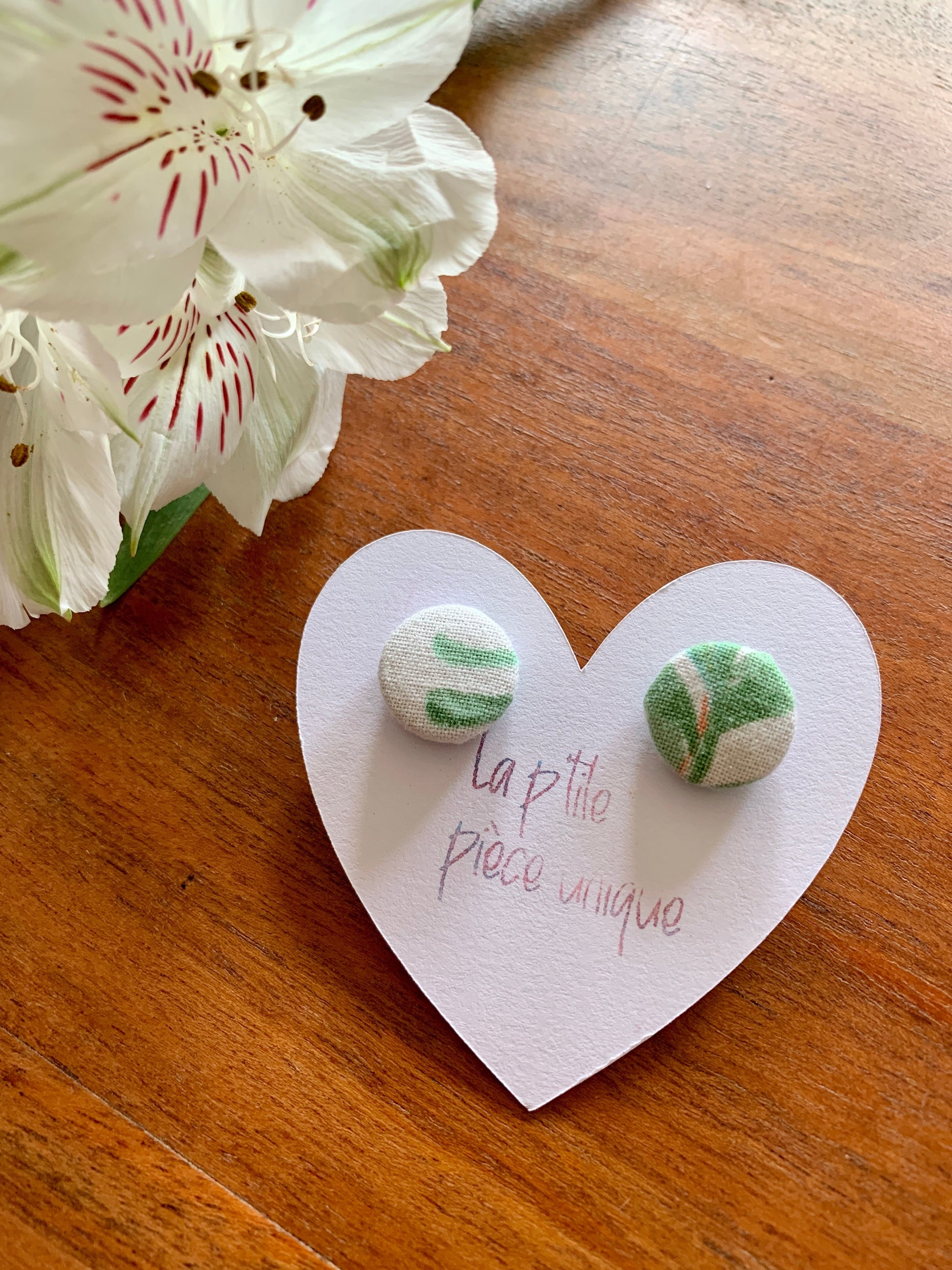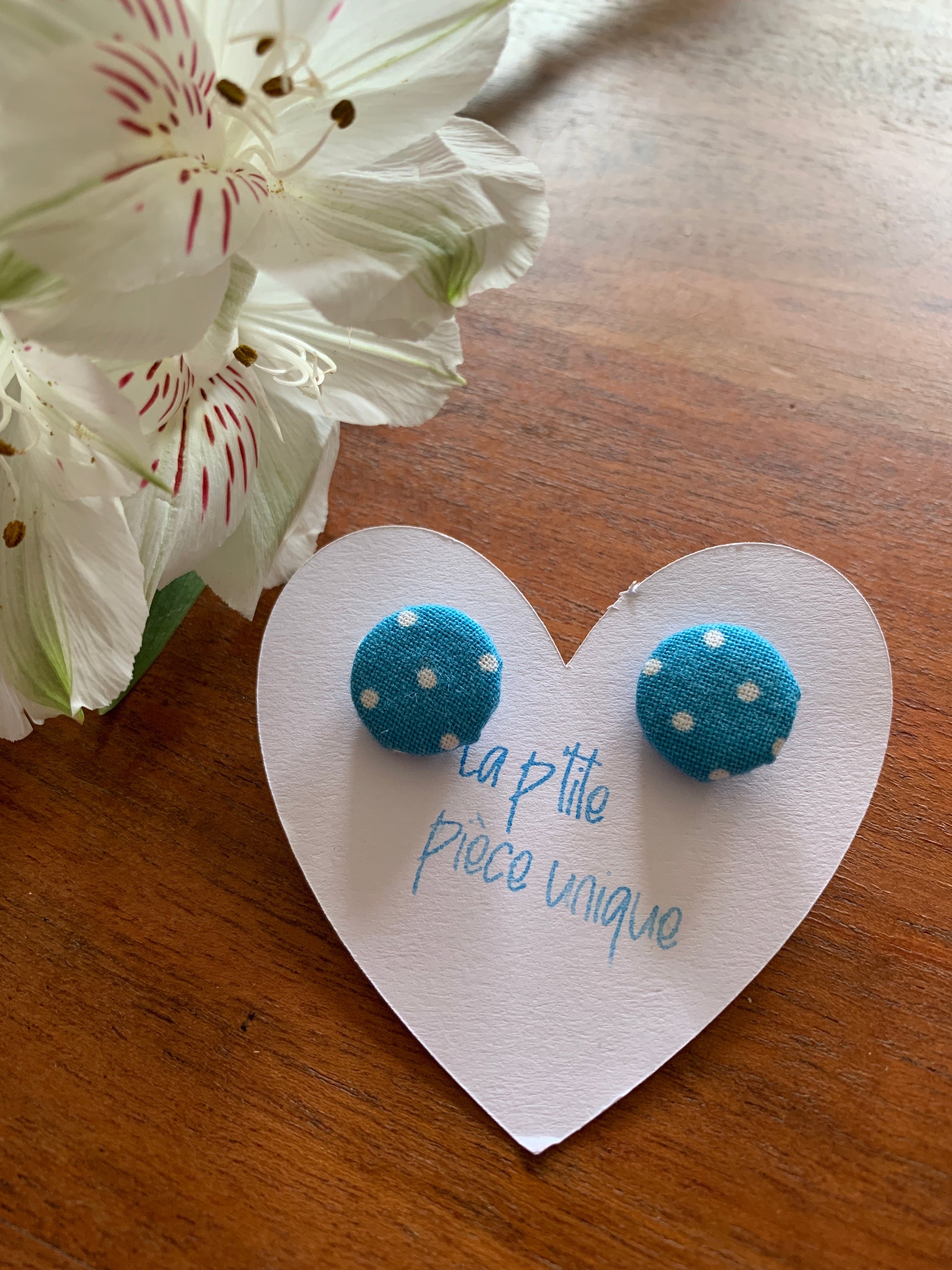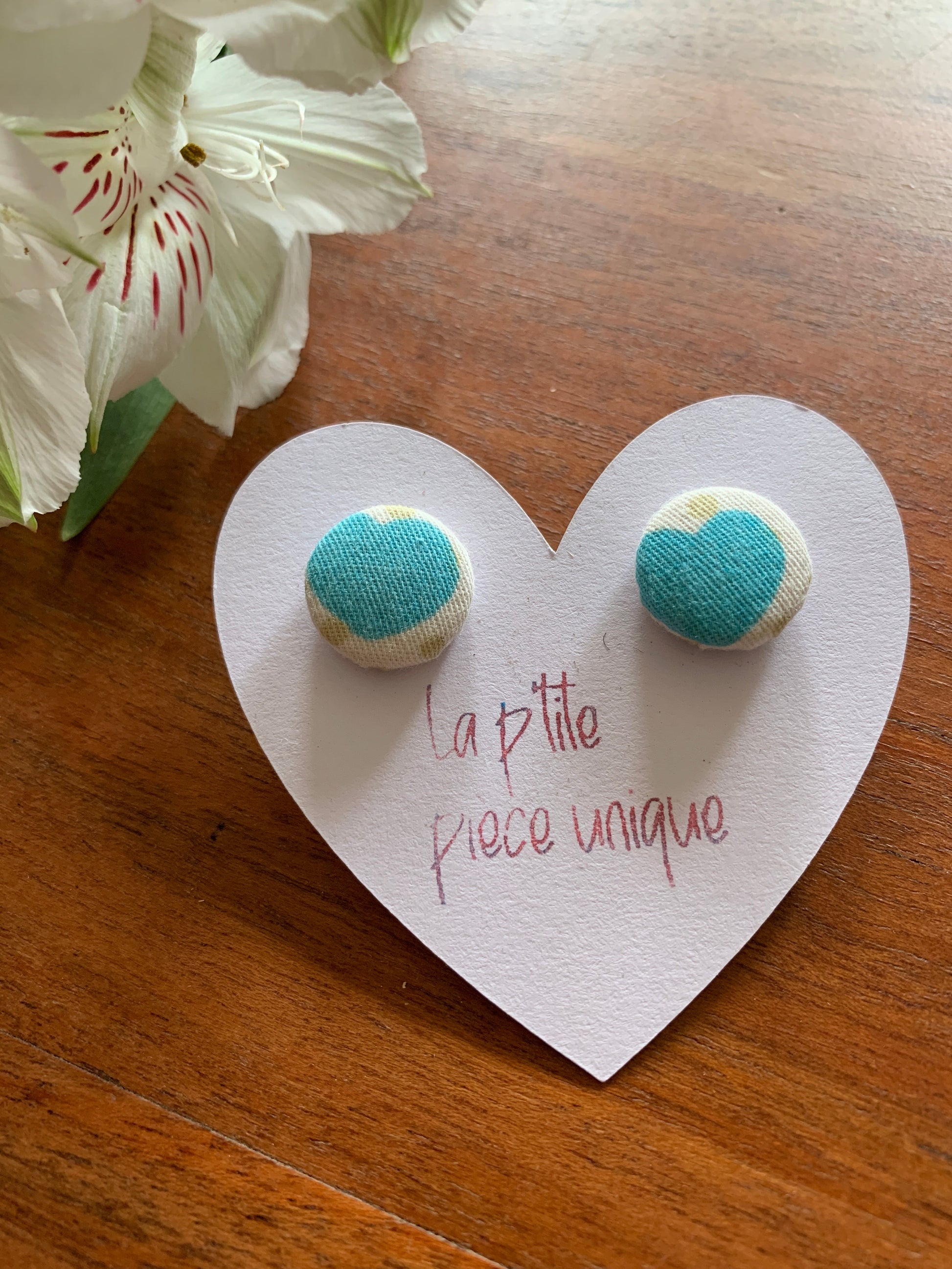 Les boucles d’oreilles ne sont pas toujours identiques, tout dépend de ce que nous avons comme possibilités avec le tissu, et c’est ce qui fait leur charme :)