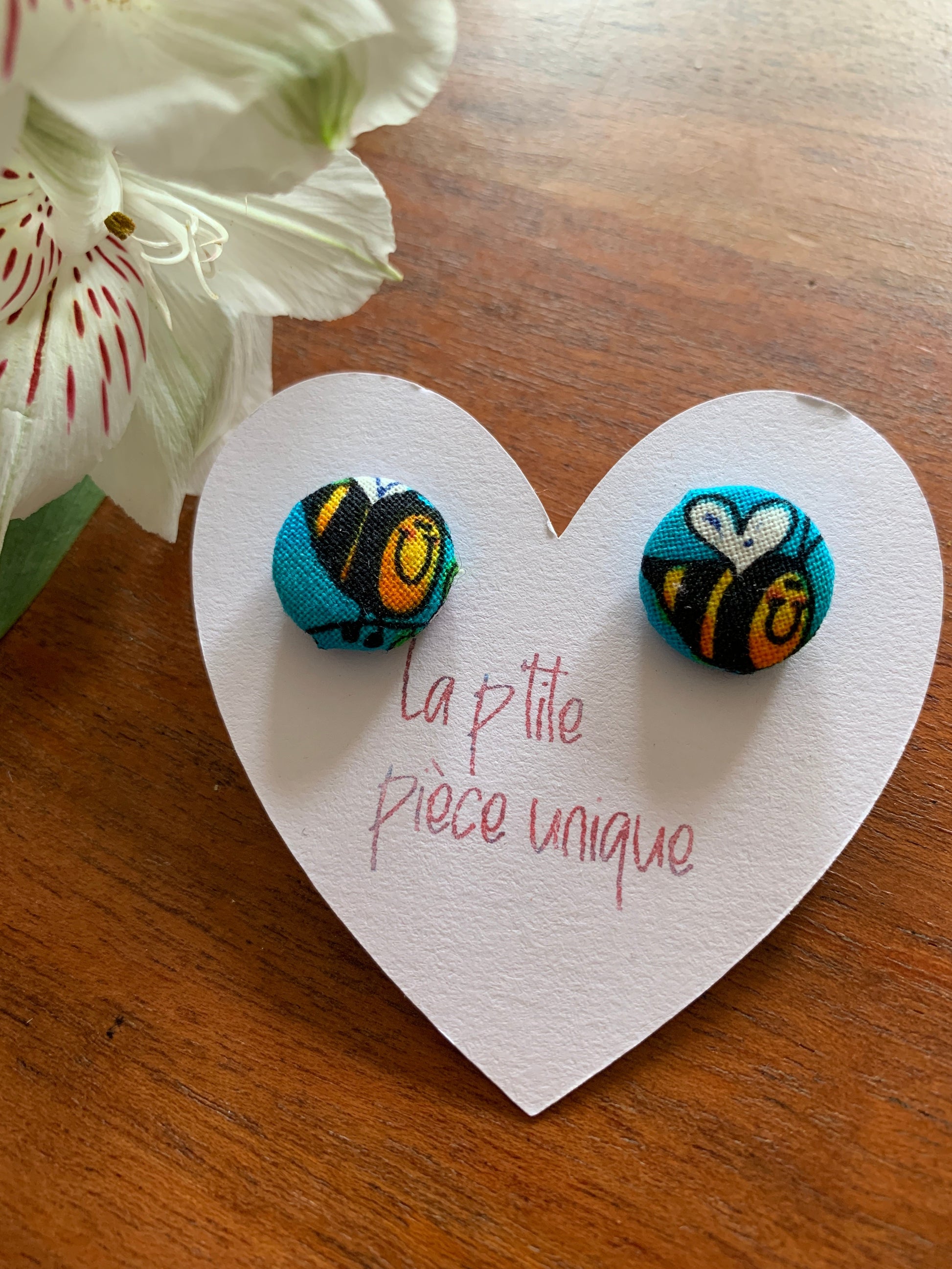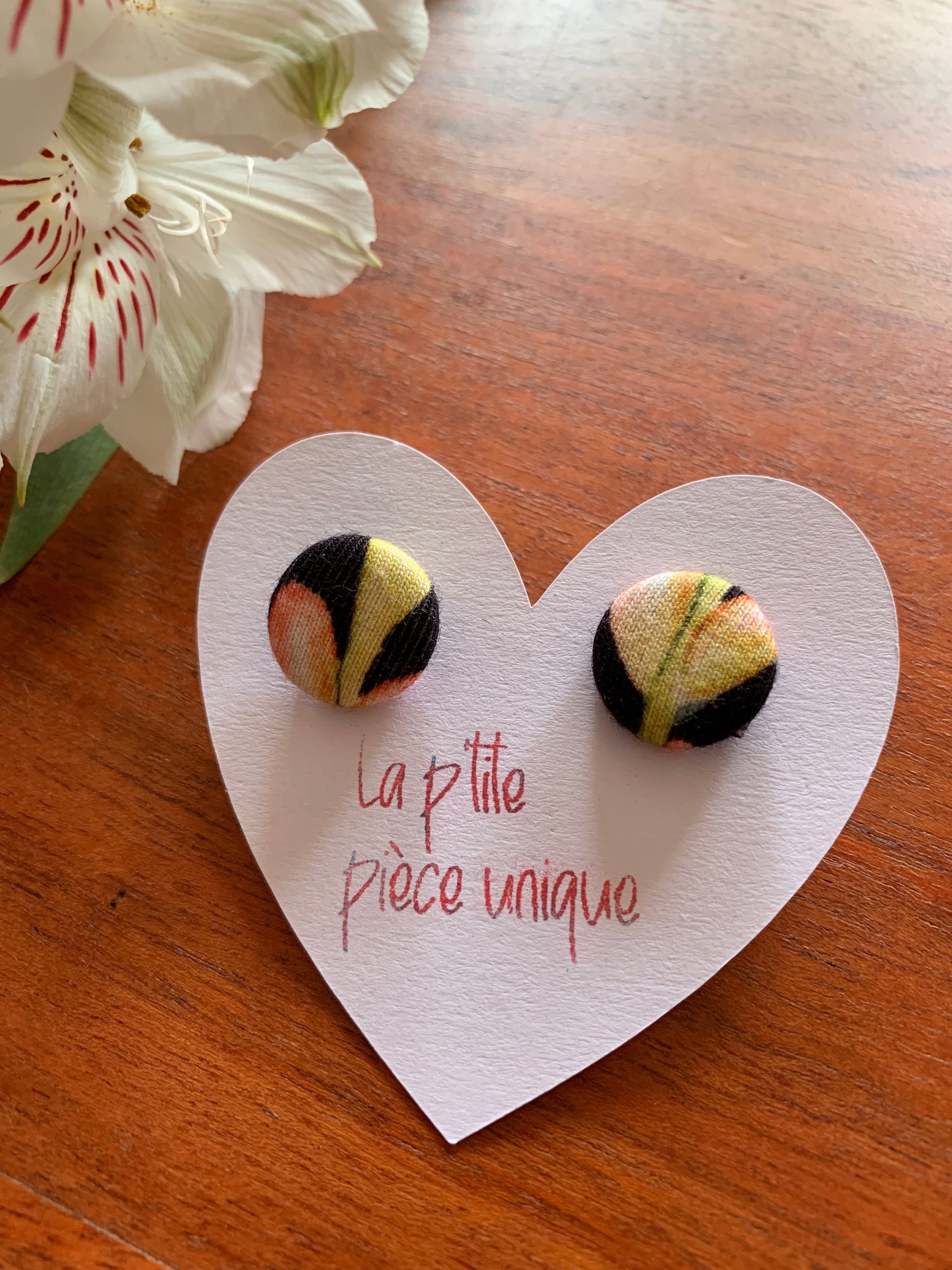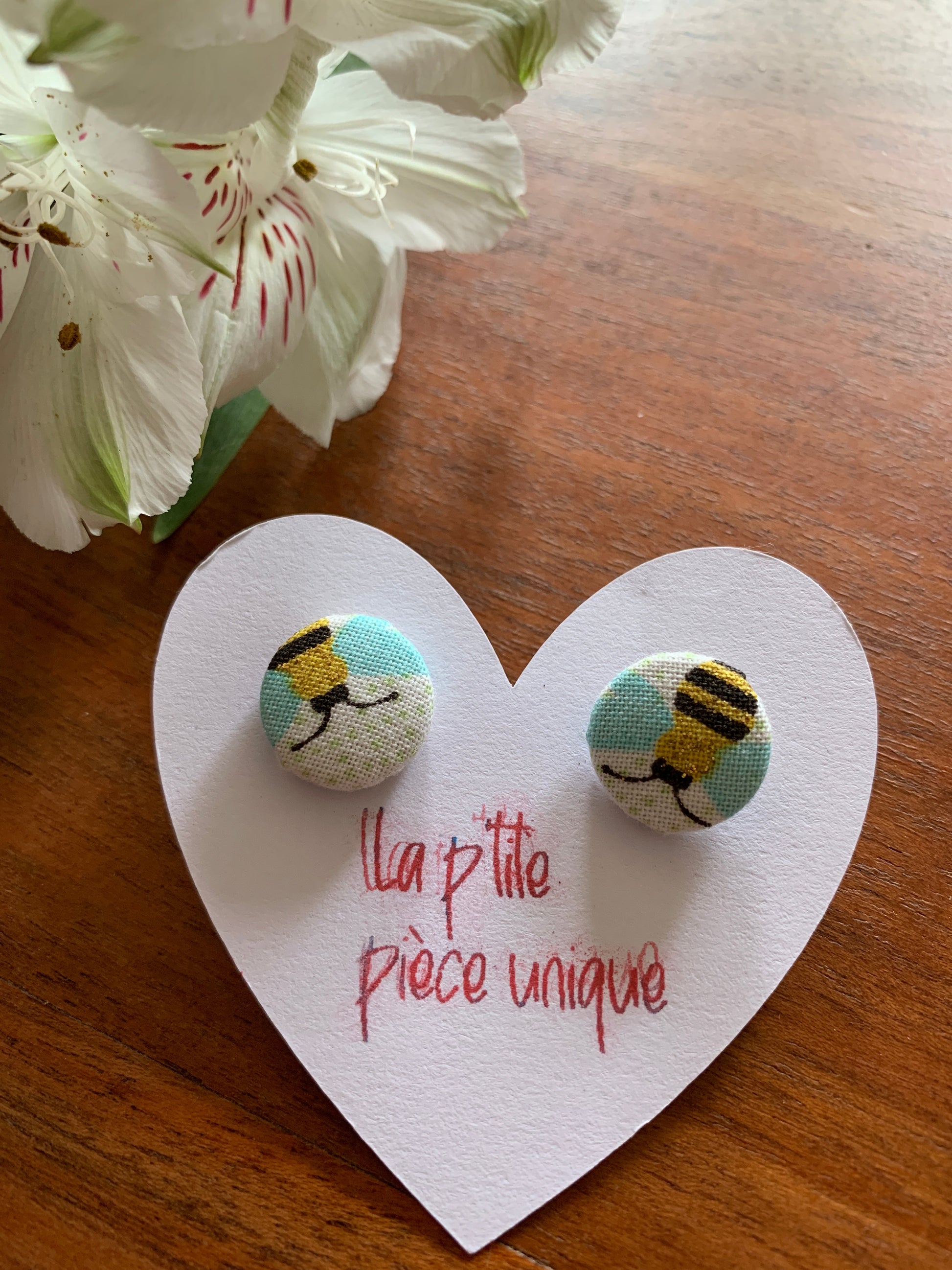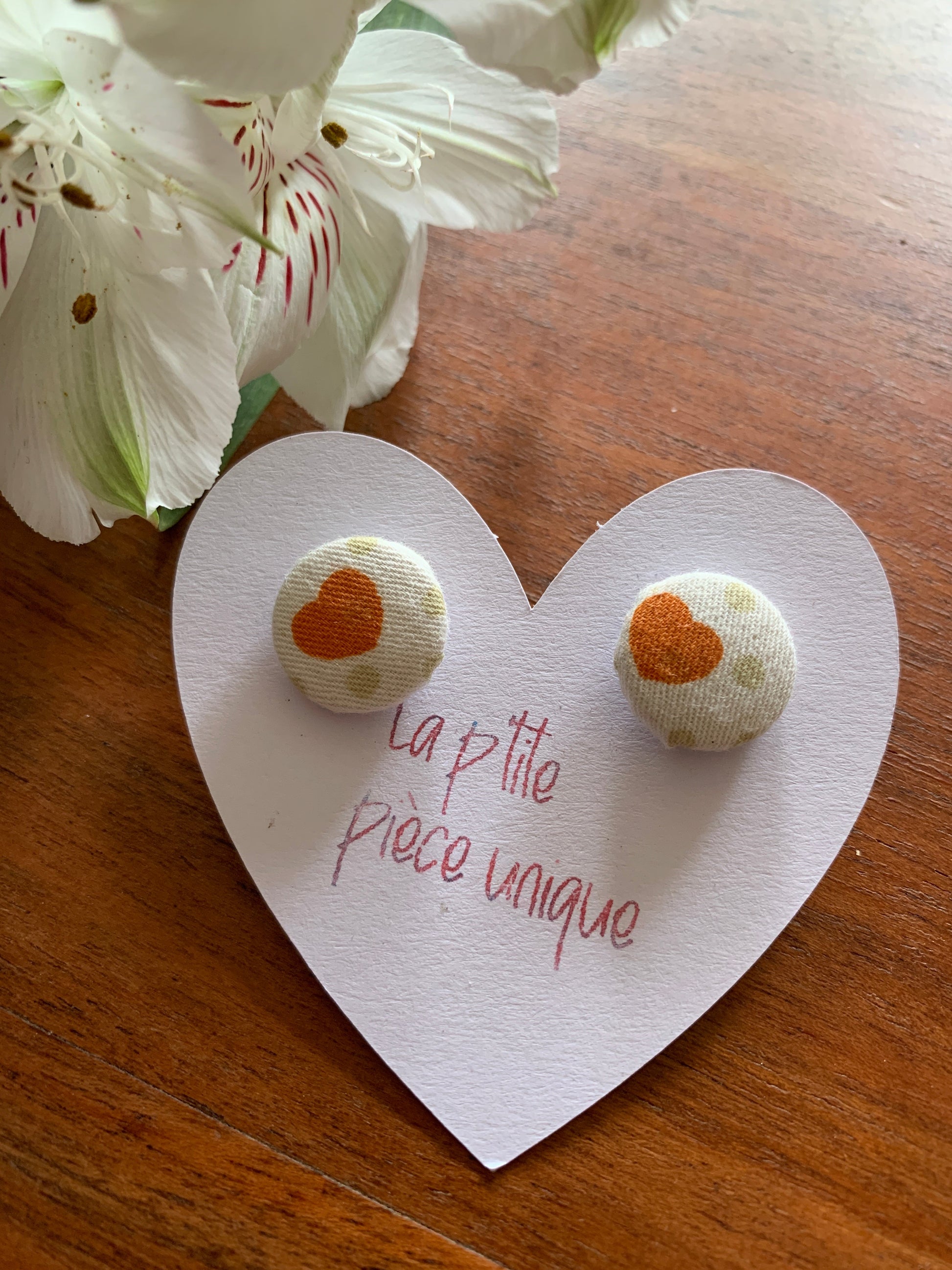 Les boucles d’oreilles ne sont pas toujours identiques, tout dépend de ce que nous avons comme possibilités avec le tissu, et c’est ce qui fait leur charme :)