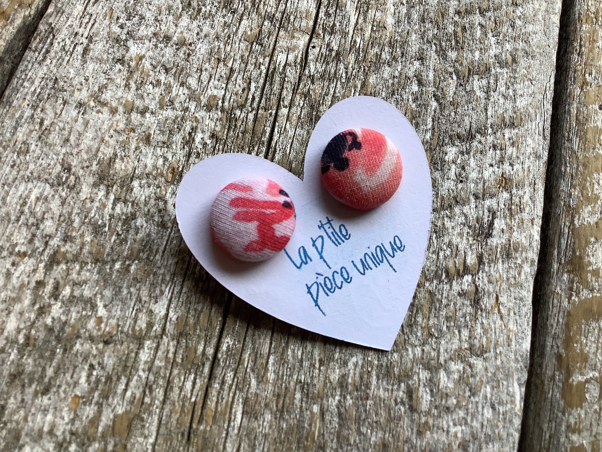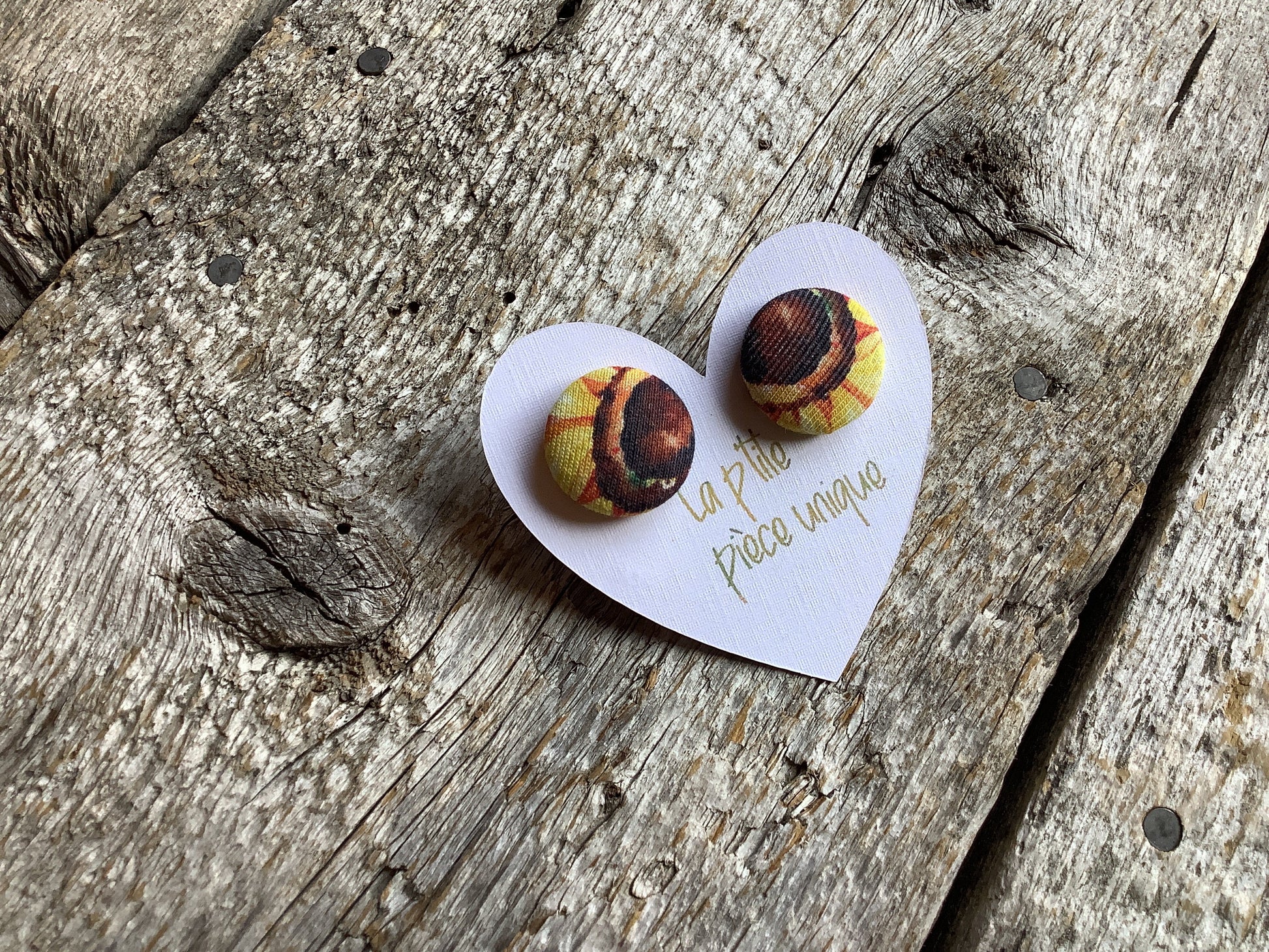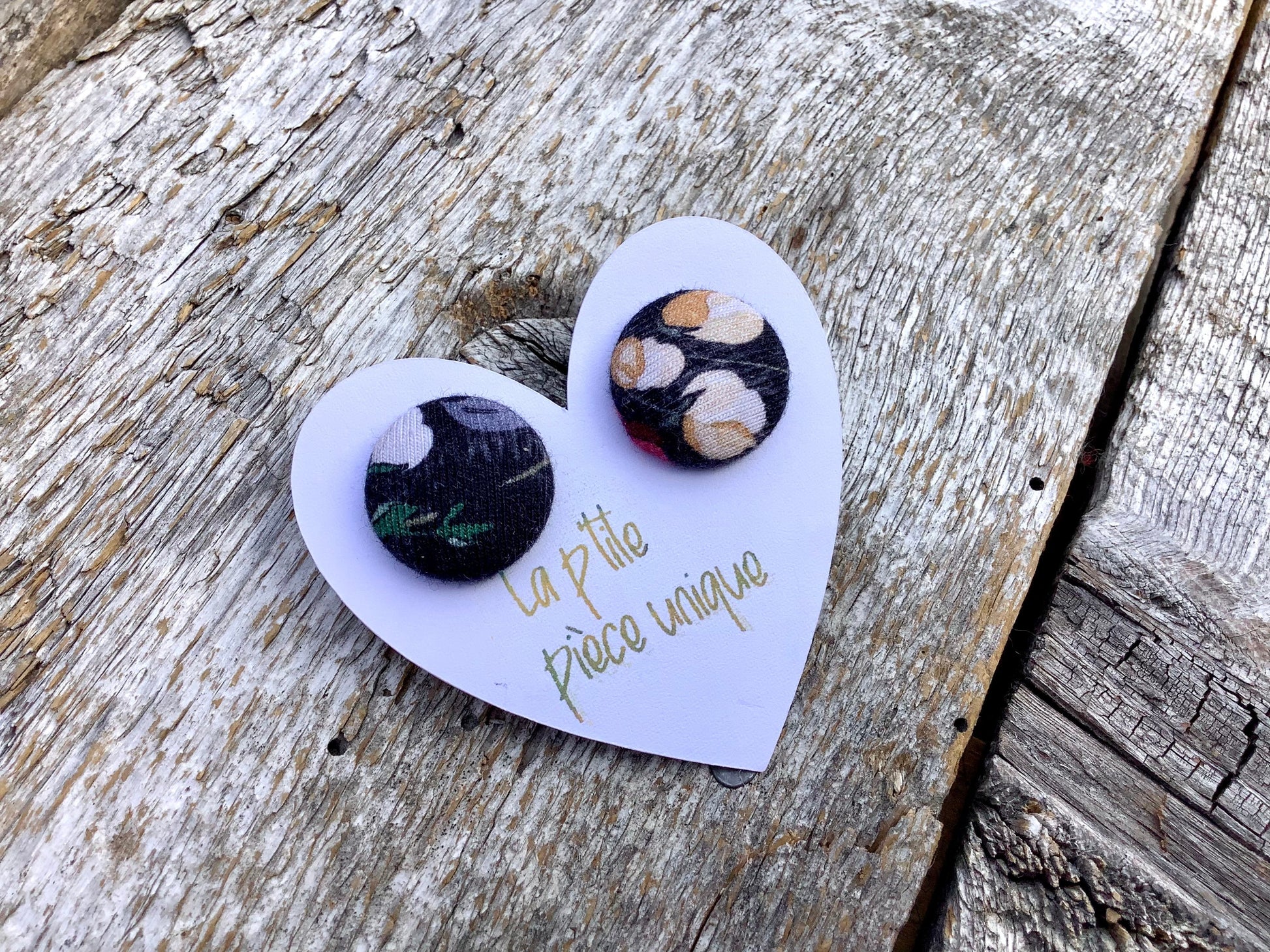 Les boucles d’oreilles ne sont pas toujours identiques, tout dépend de ce que nous avons comme possibilités avec le tissu, et c’est ce qui fait leur charme :)