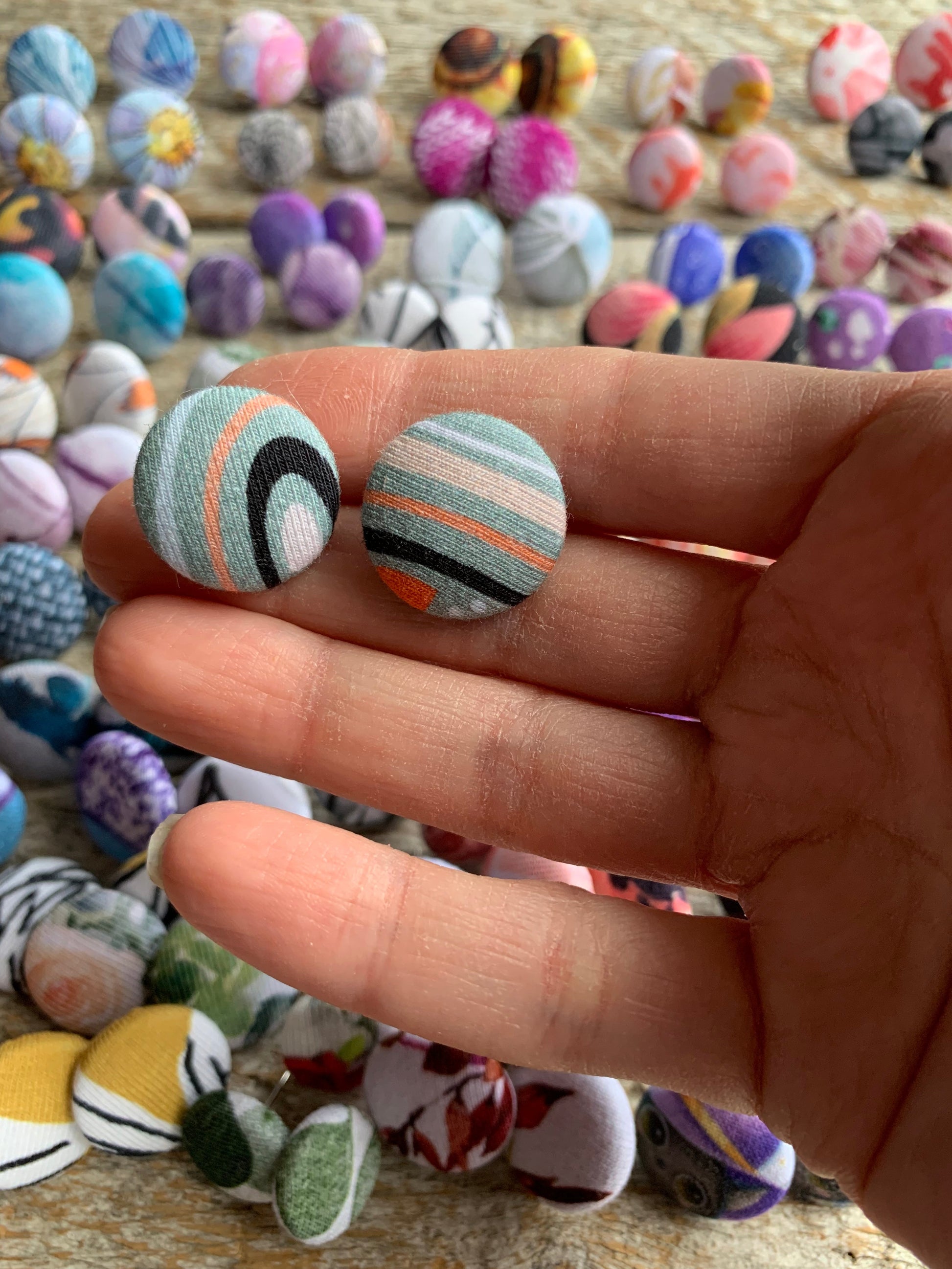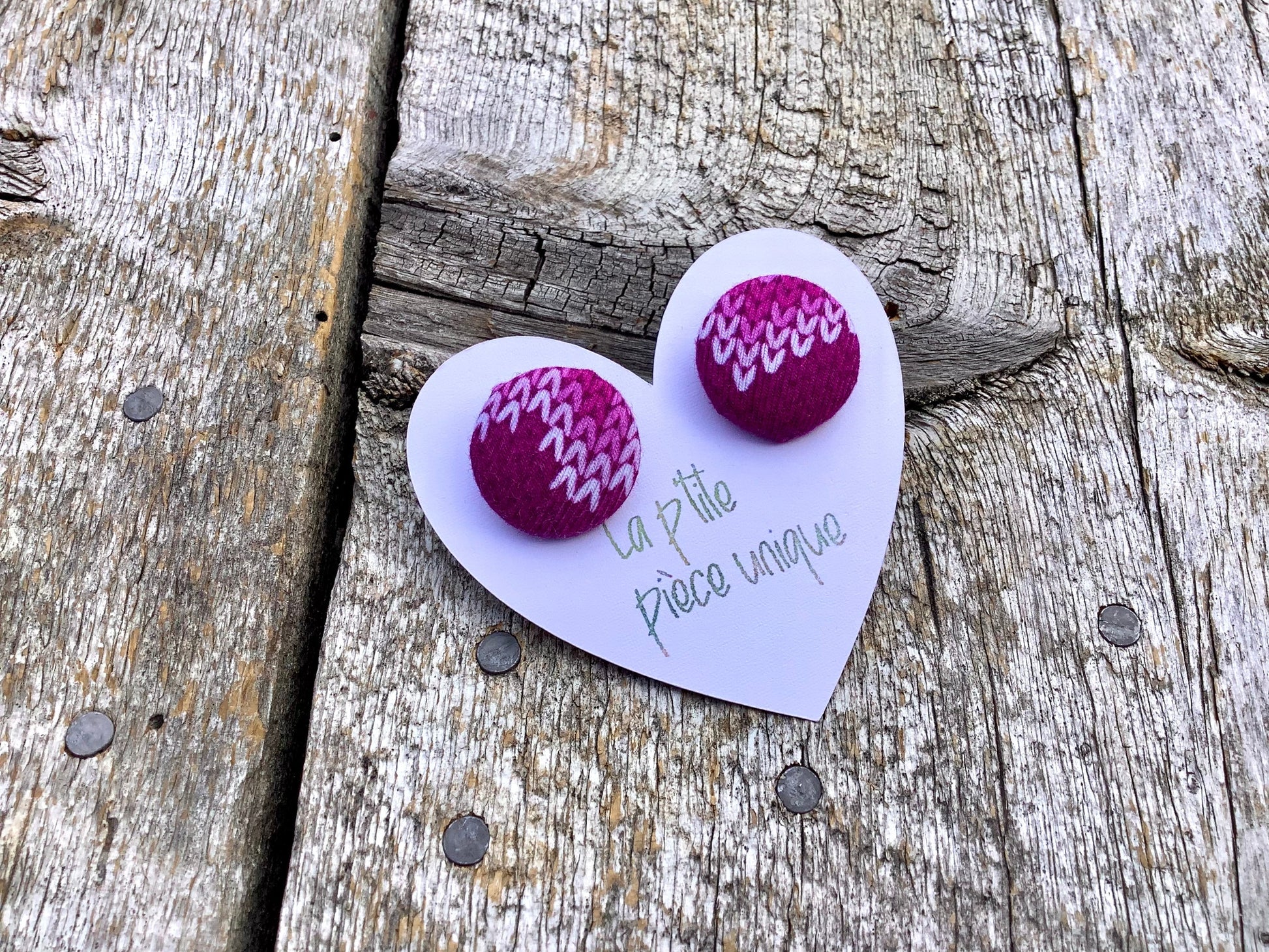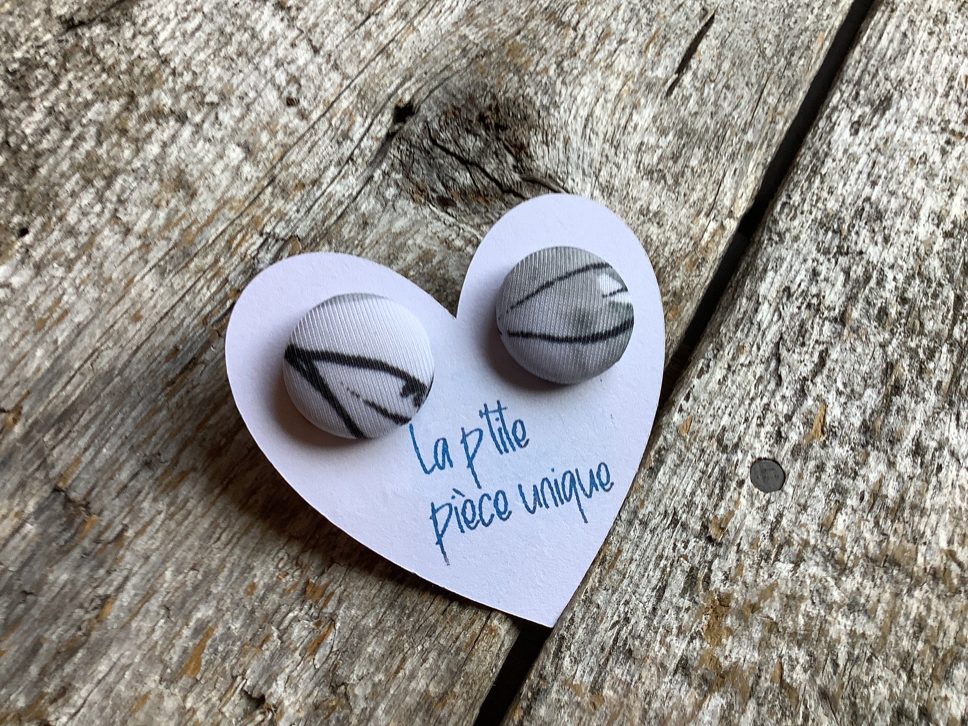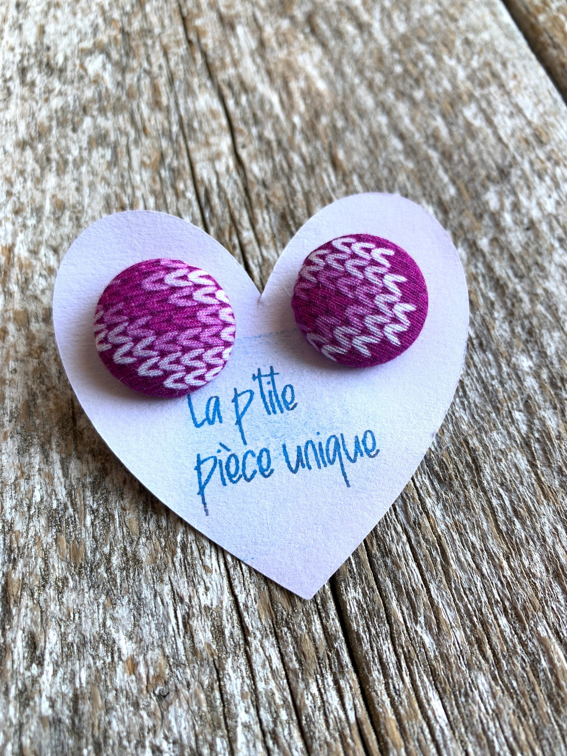 Les boucles d’oreilles ne sont pas toujours identiques, tout dépend de ce que nous avons comme possibilités avec le tissu, et c’est ce qui fait leur charme :)