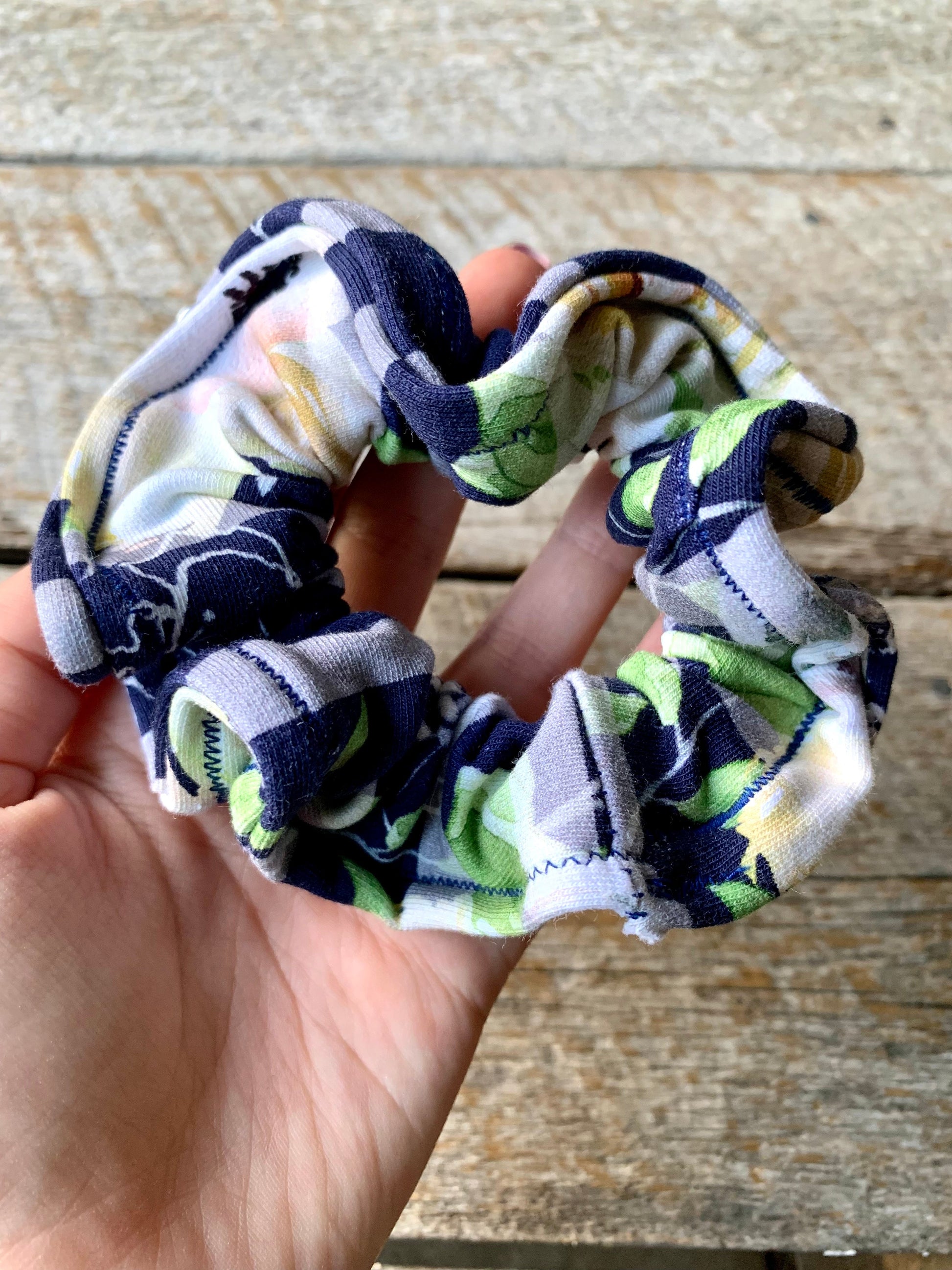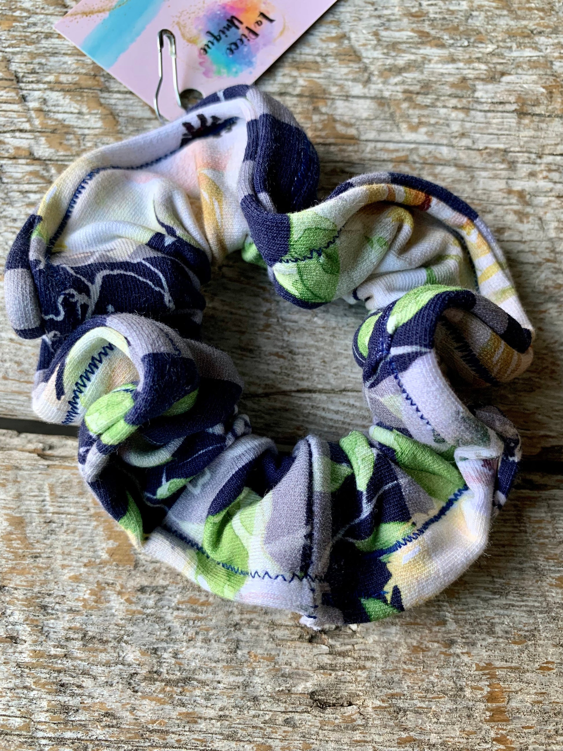 Chouchou - Floral sur fond rayé marine & gris - Par La Pièce Unique - Élya