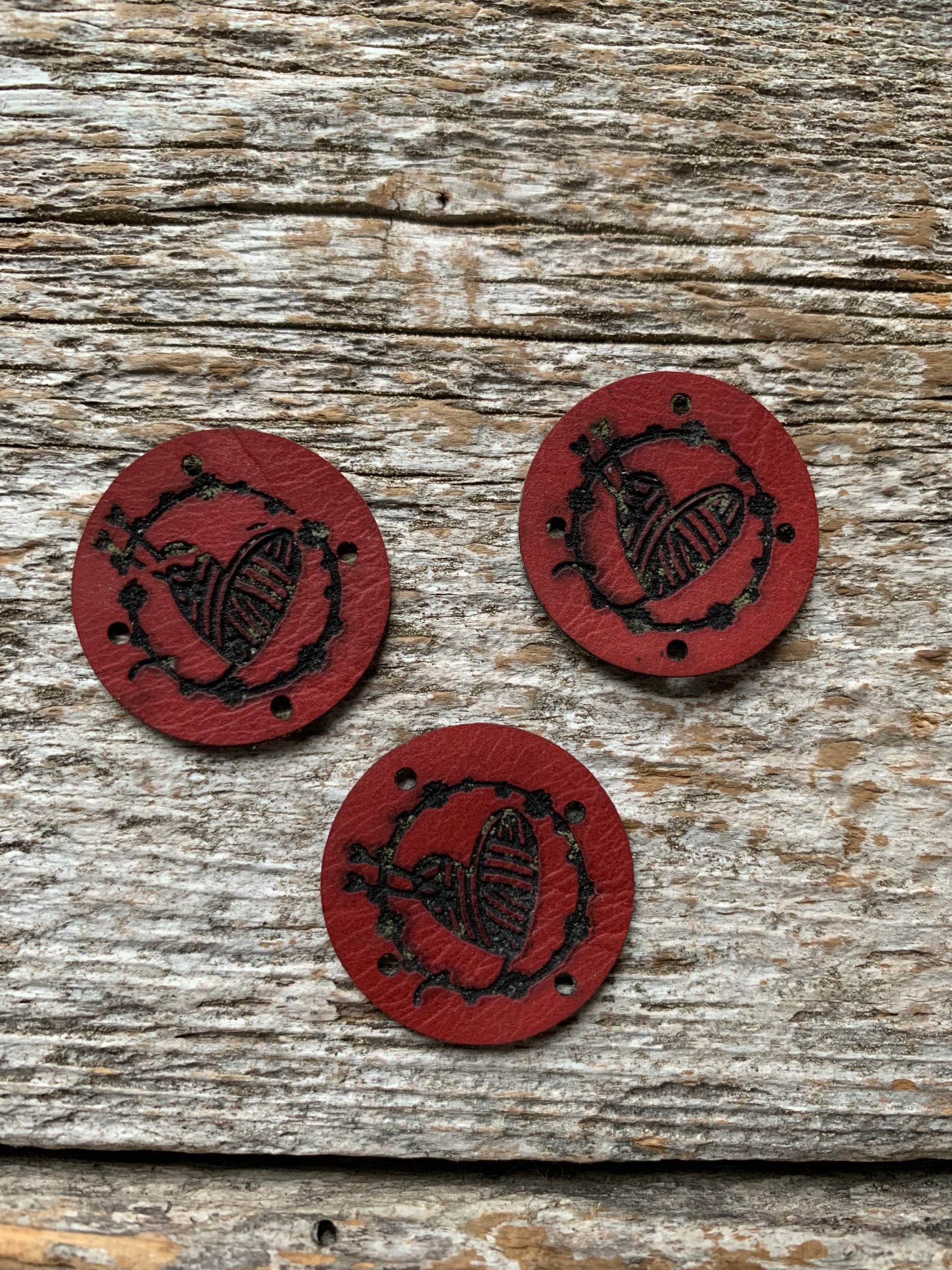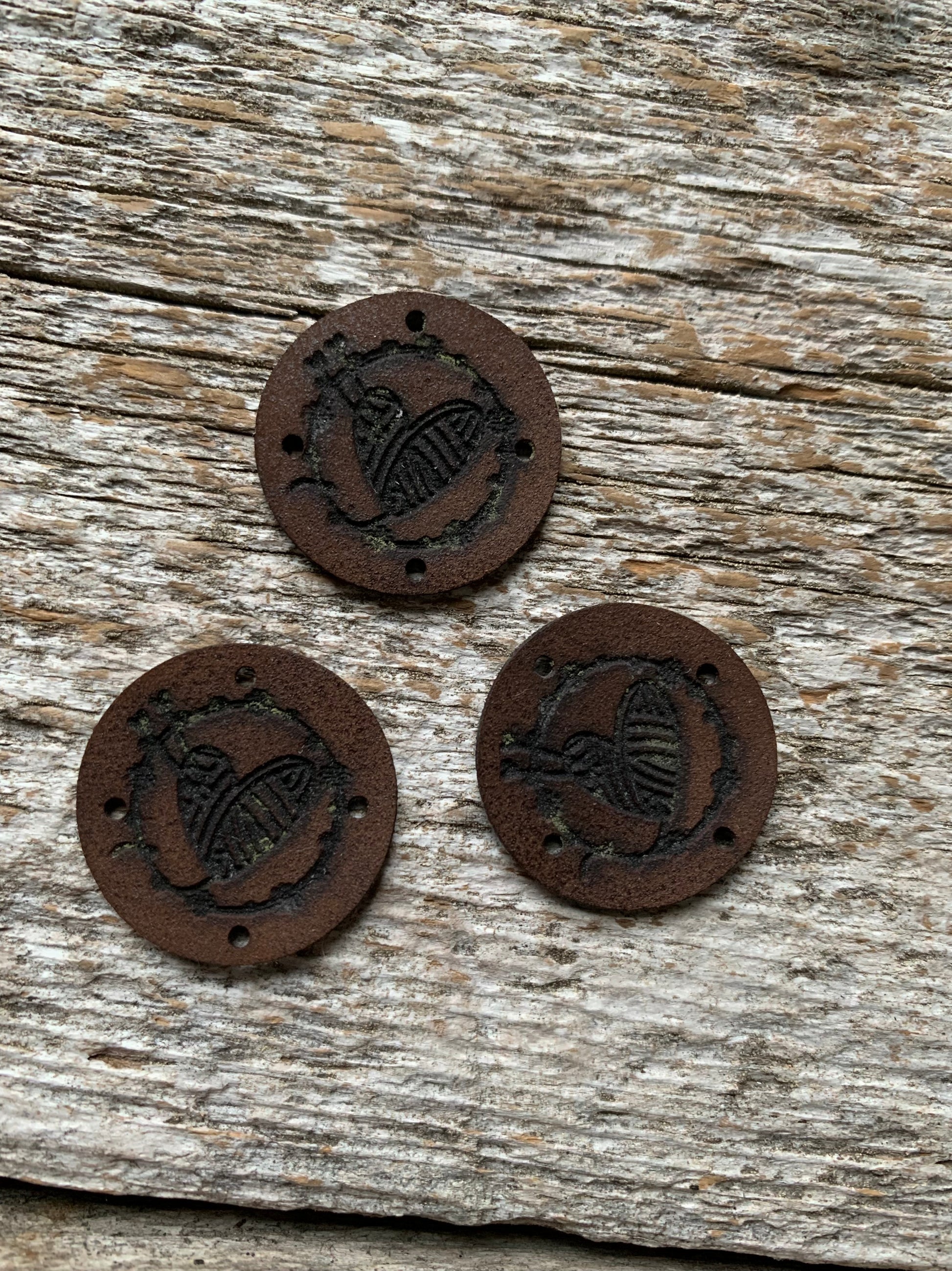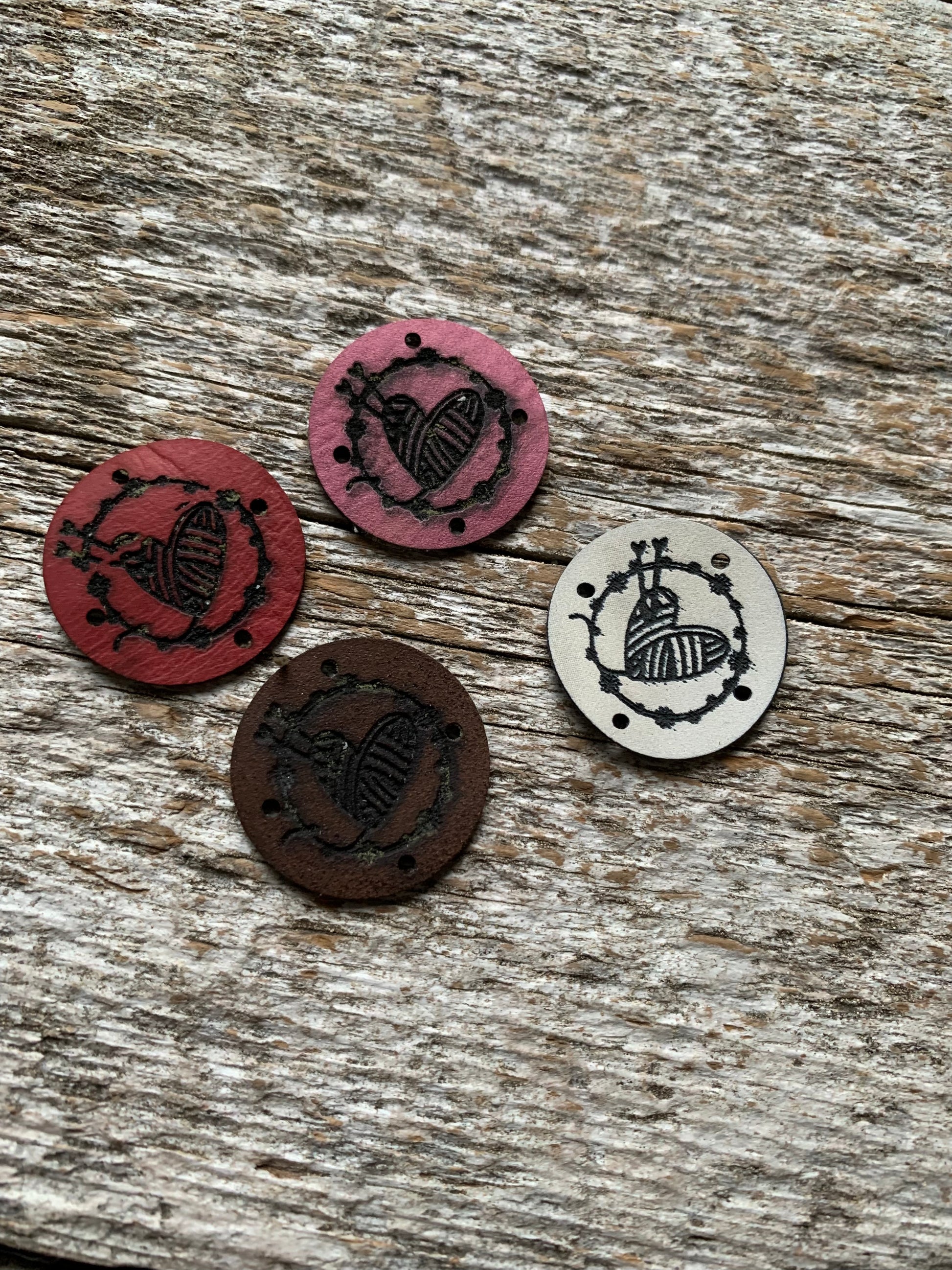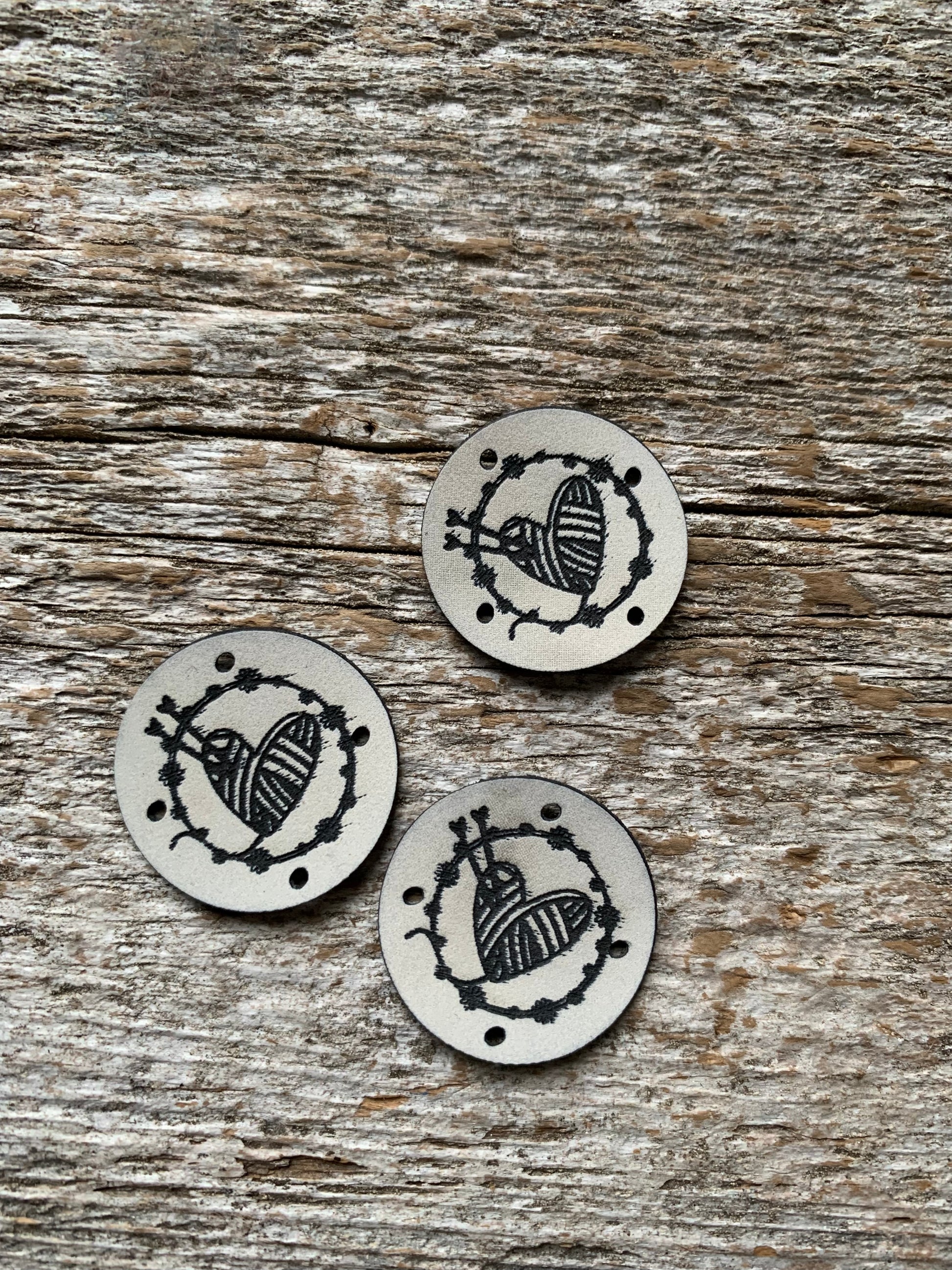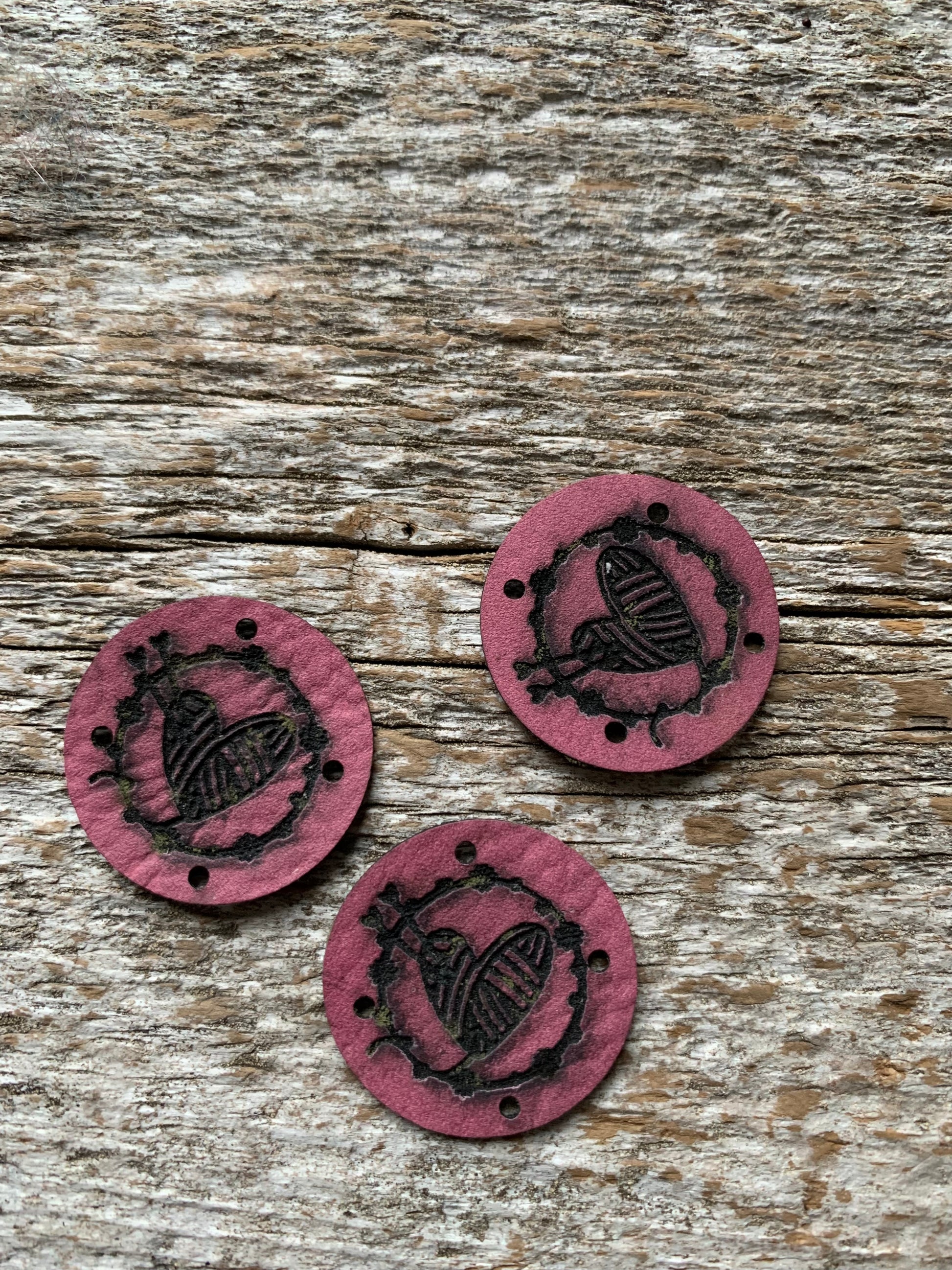Étiquettes à projet de cuir - Coeur balle de laine ds un cerce