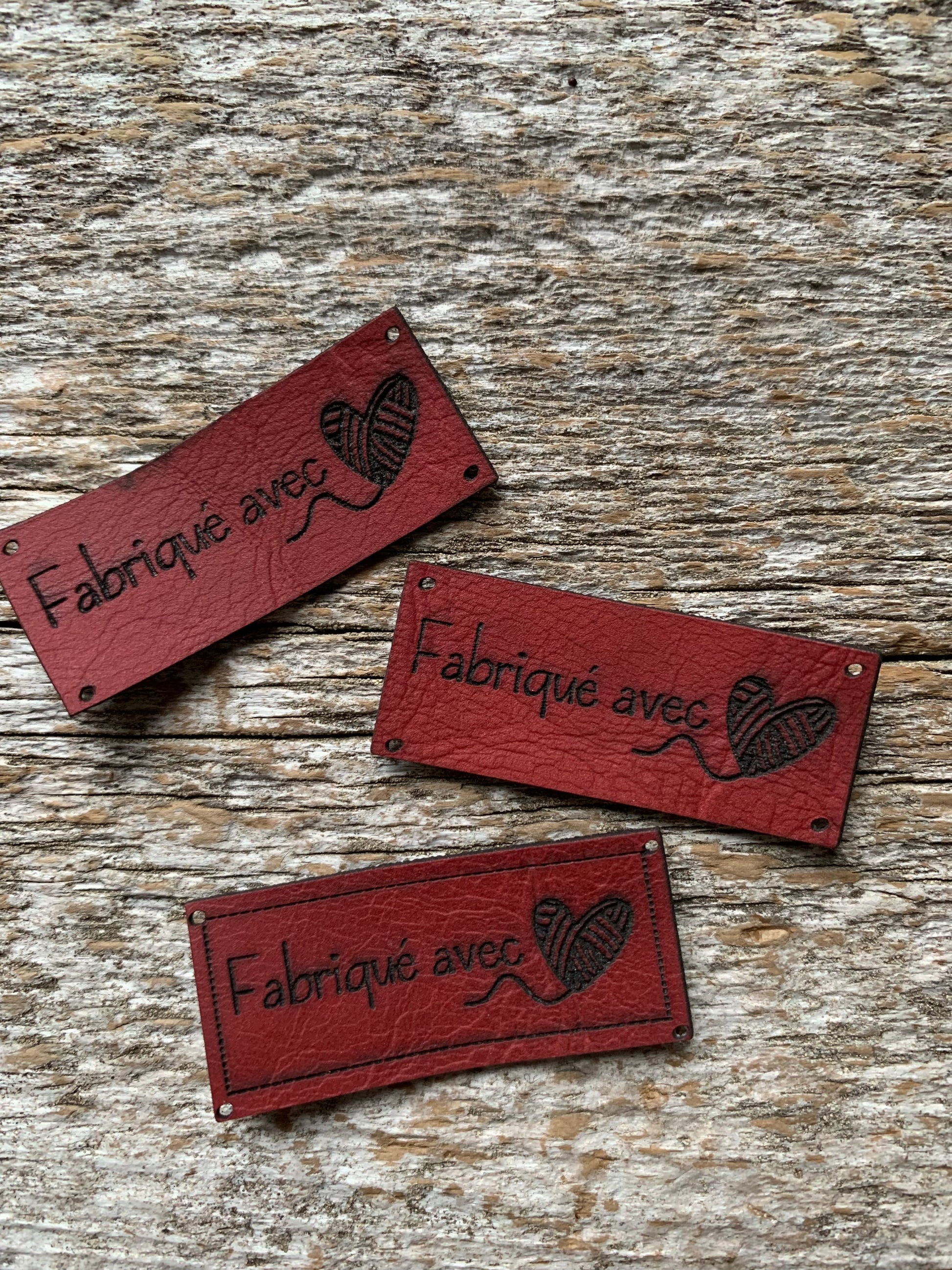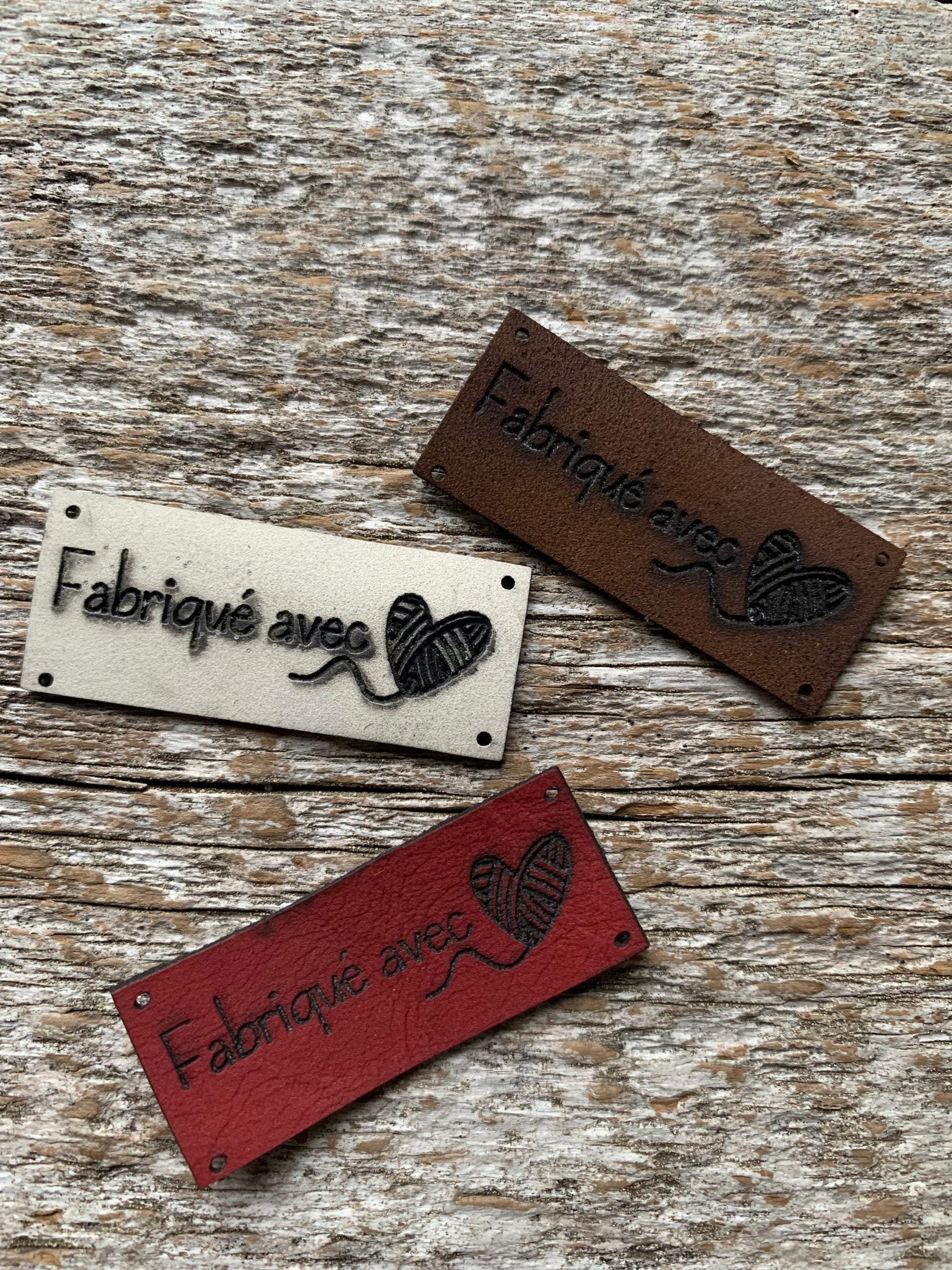 Étiquettes à projet de cuir - Fabriqué avec (Coeur balle de laine)