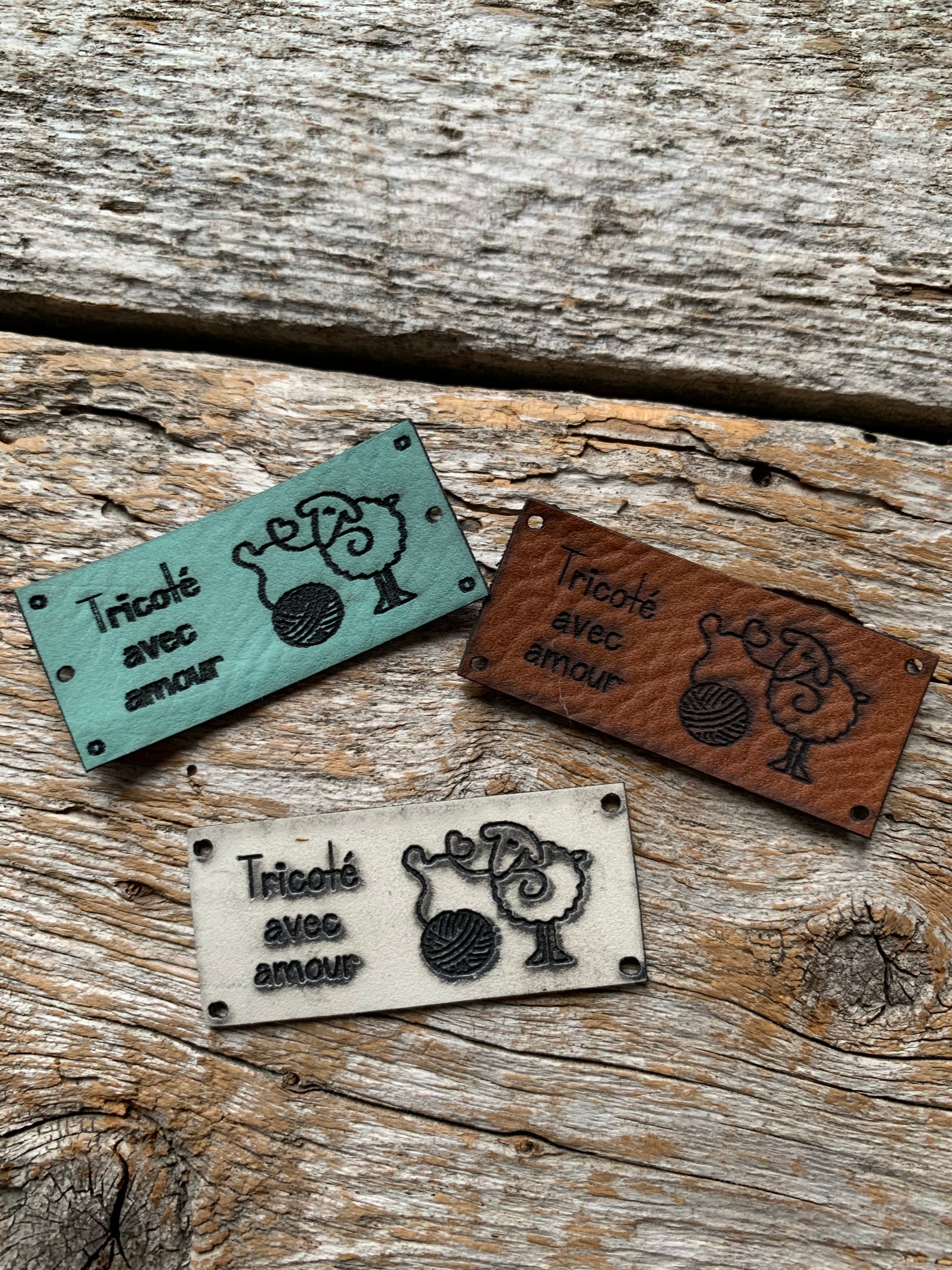 Étiquettes à projet de cuir - Tricoté avec amour + mouton