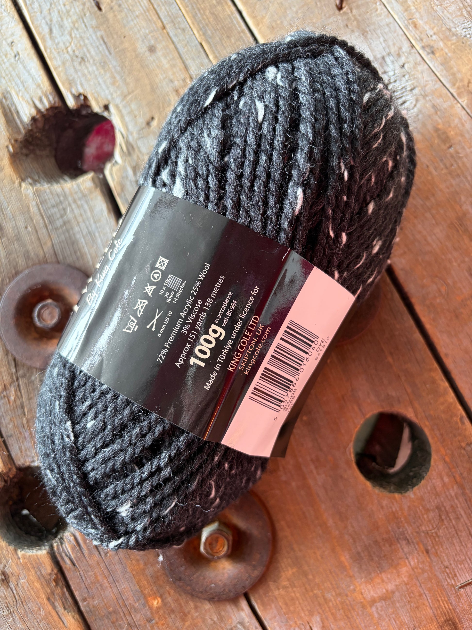 A beautiful bulky, tweed effect acrylic - yarn - viscose blend. Machine washable.