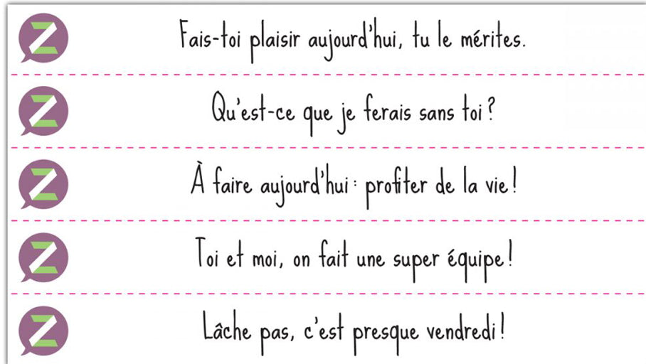 Here are the surprise message to put in the fortune cookies, handmade in Quebec by Zimo ! Perfect to leave a little surprise on your little ones lunchboxes, as example :)