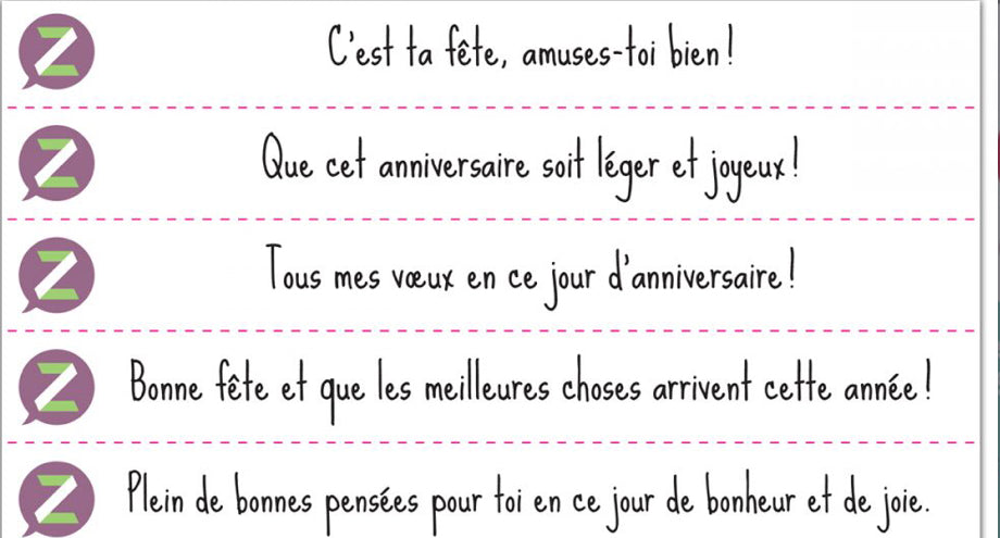 Chaque paquet comprends 5 phrase, et chaque phrase est écrite en français et en anglais .
