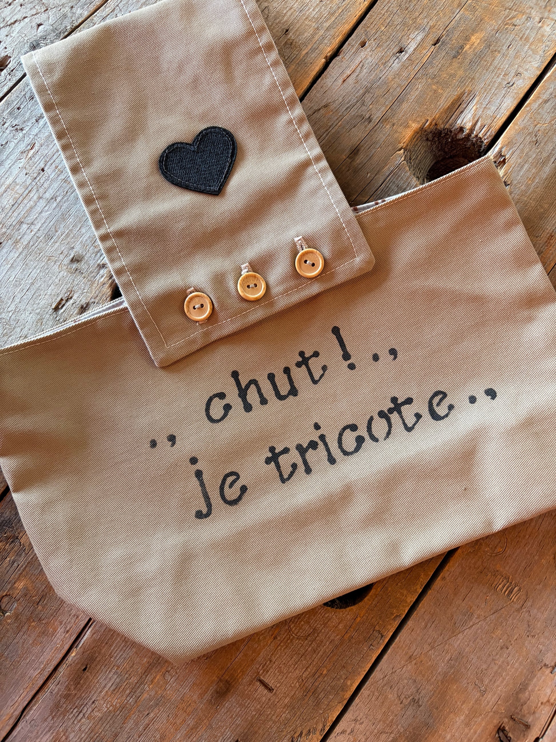 Sac à projet par Simone Gagné - #3 - chut je tricote beige interieur chiens