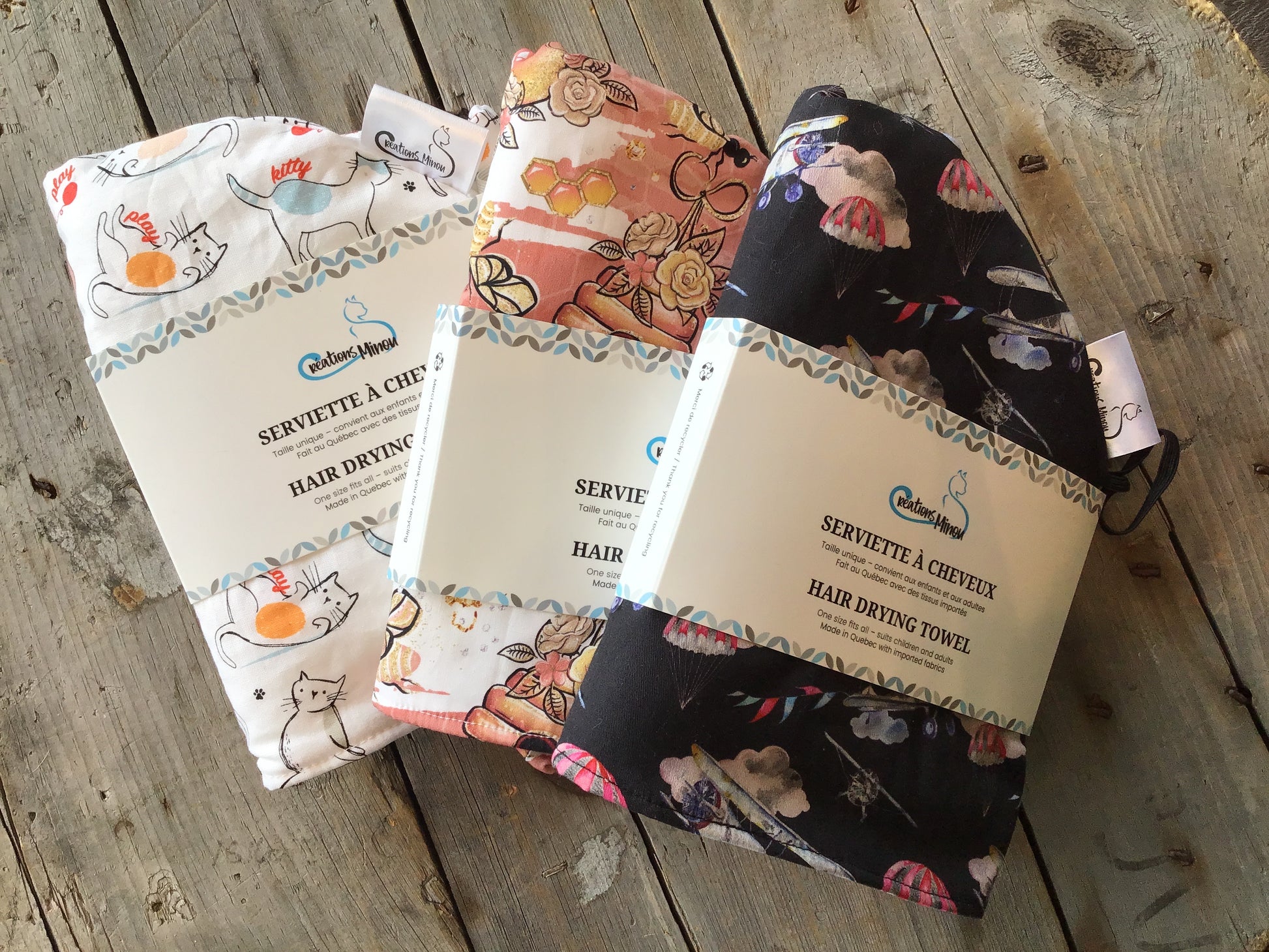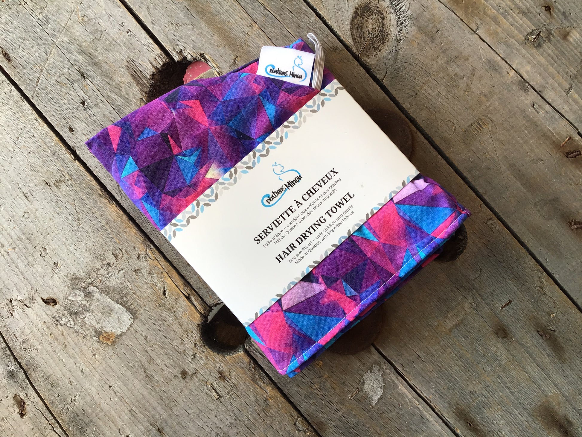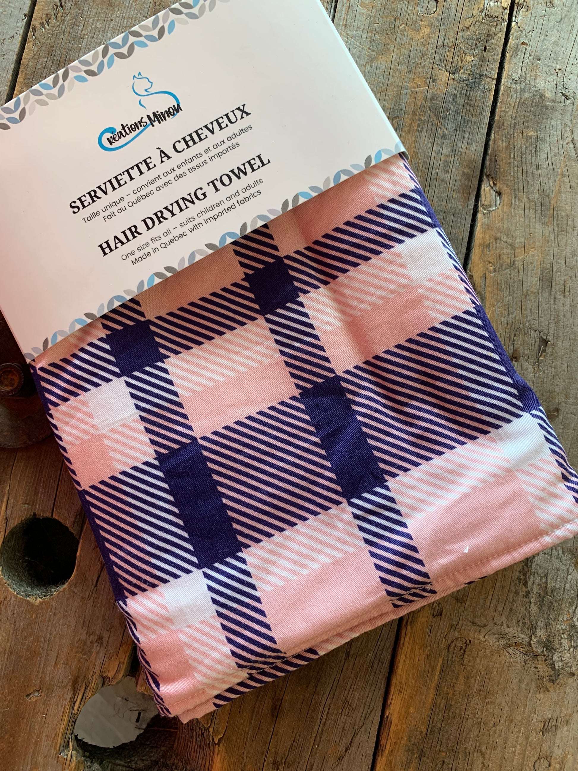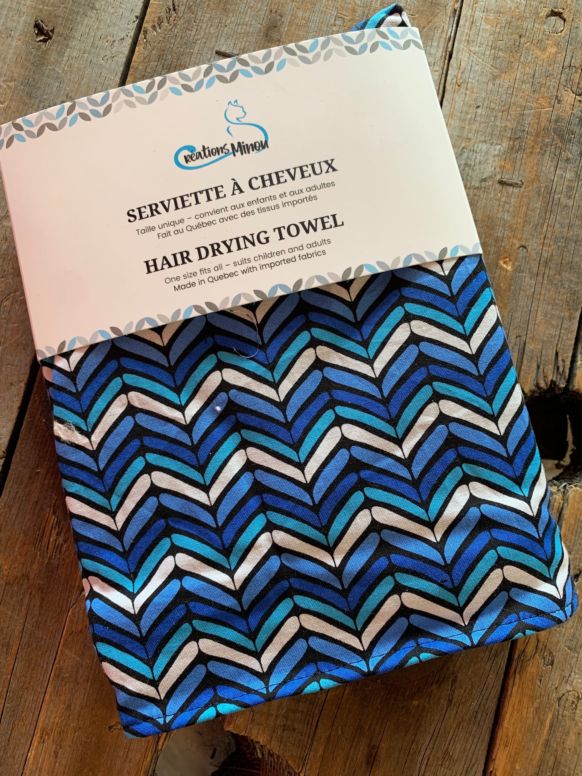 Serviette à cheveux fait au Québec par la compagnie Création Minou.