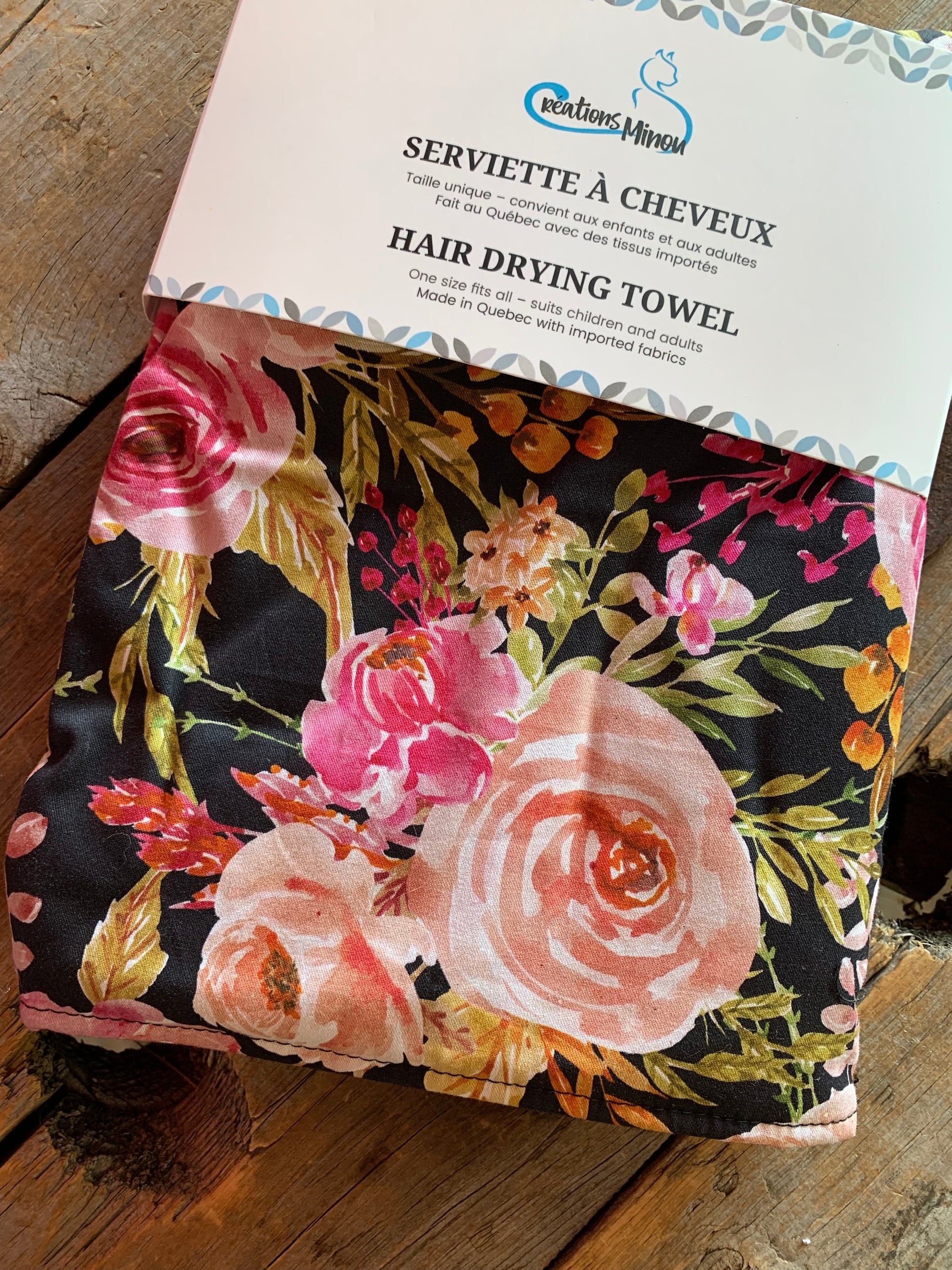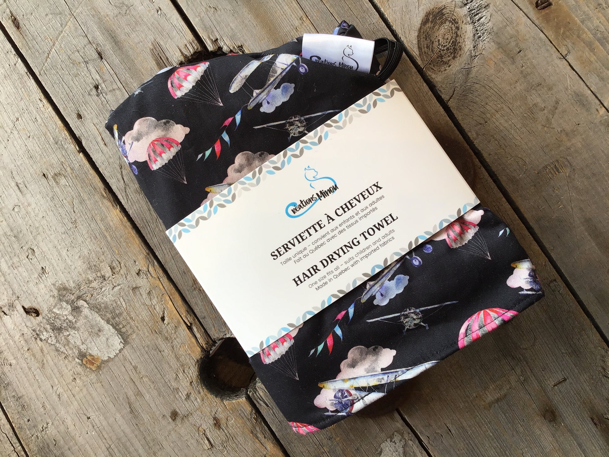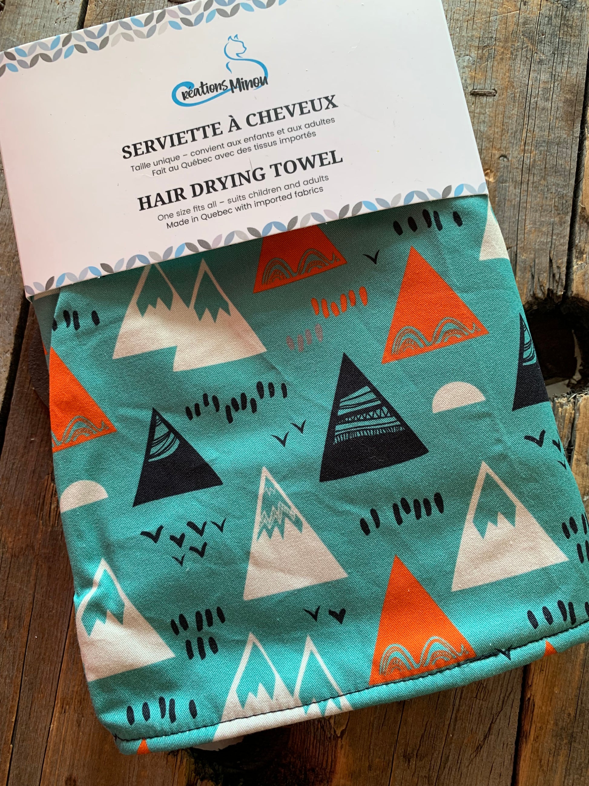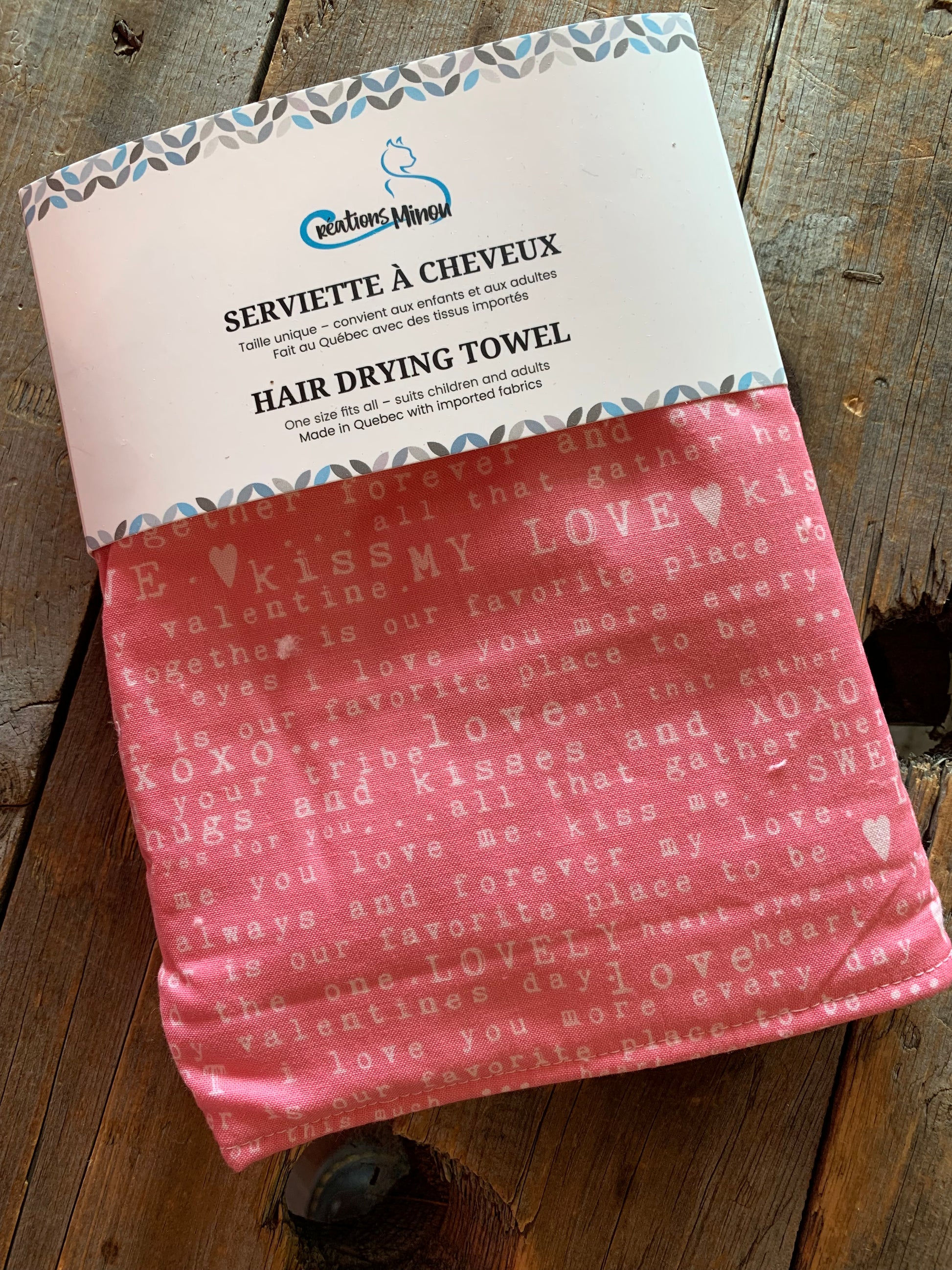 Serviette à cheveux fait au Québec par la compagnie Création Minou.