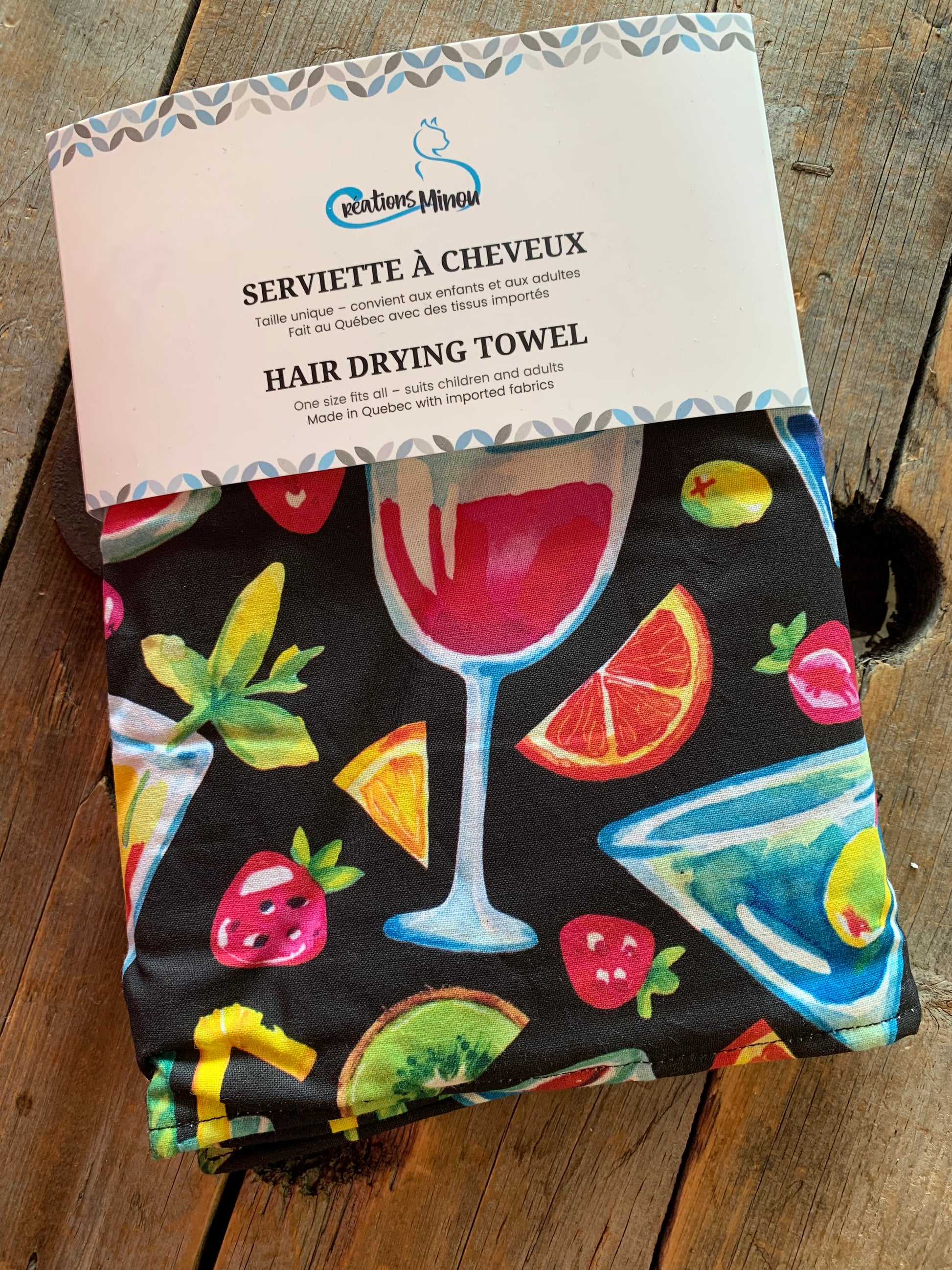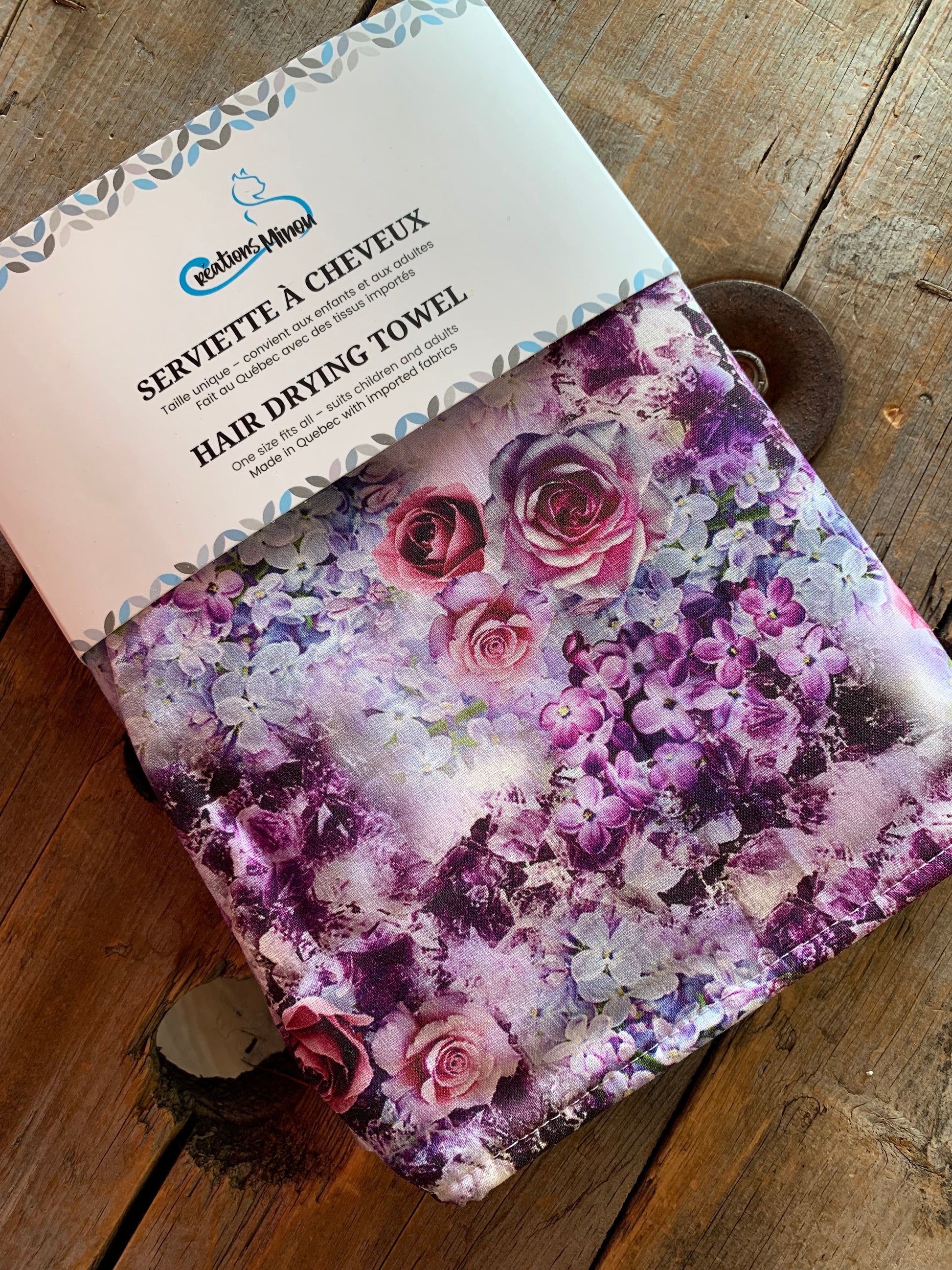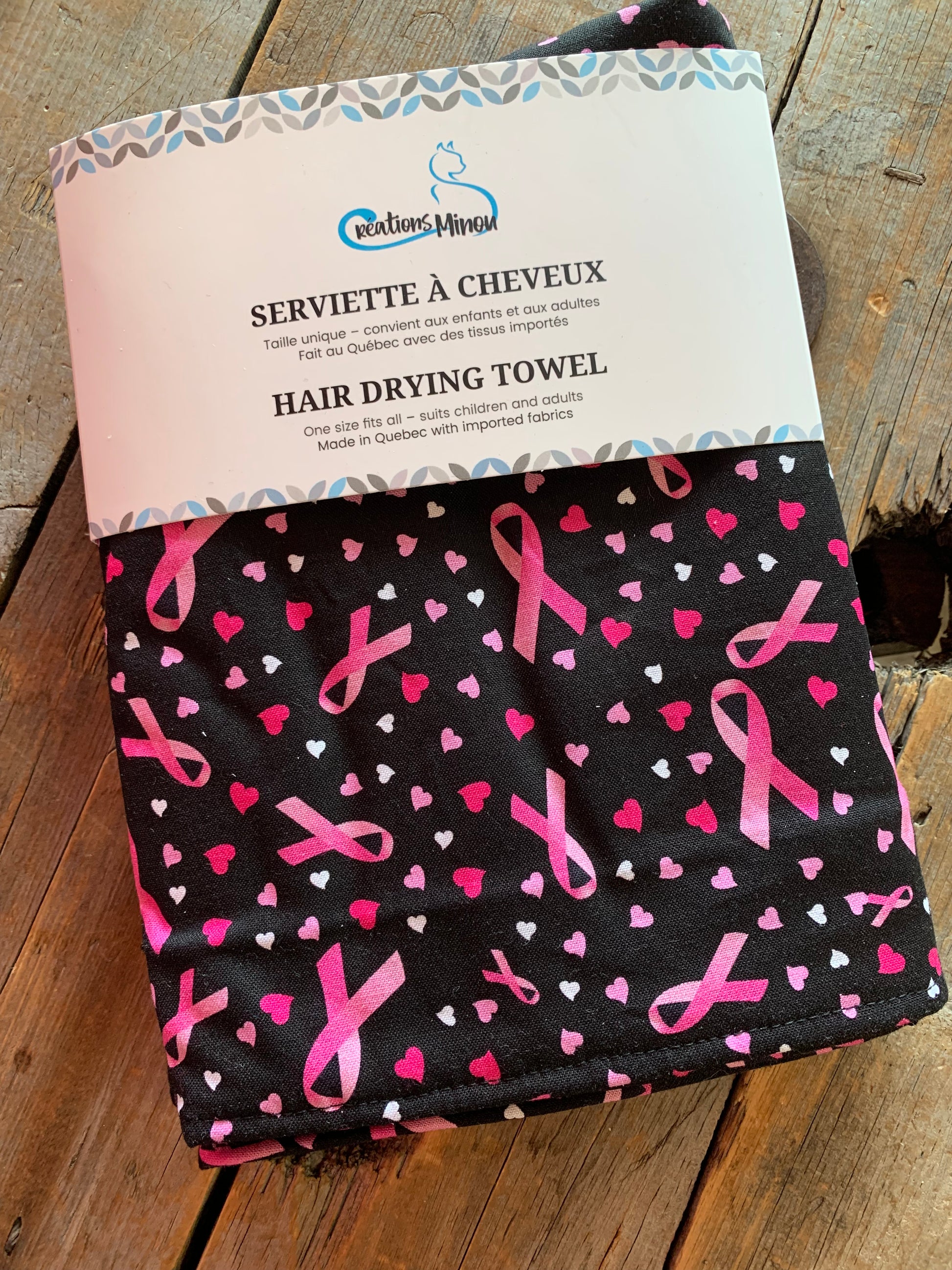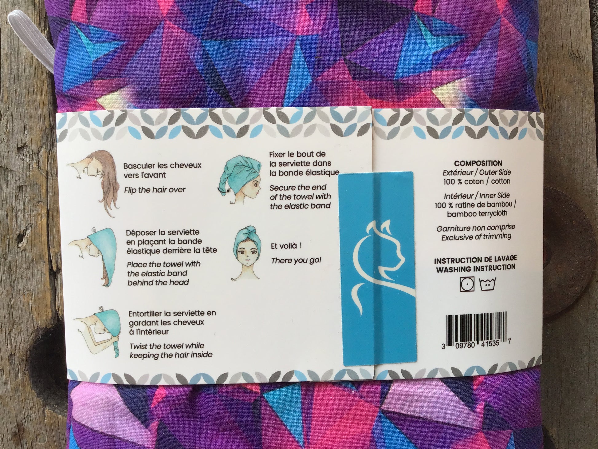 Serviette à cheveux fait au Québec par la compagnie Création Minou.